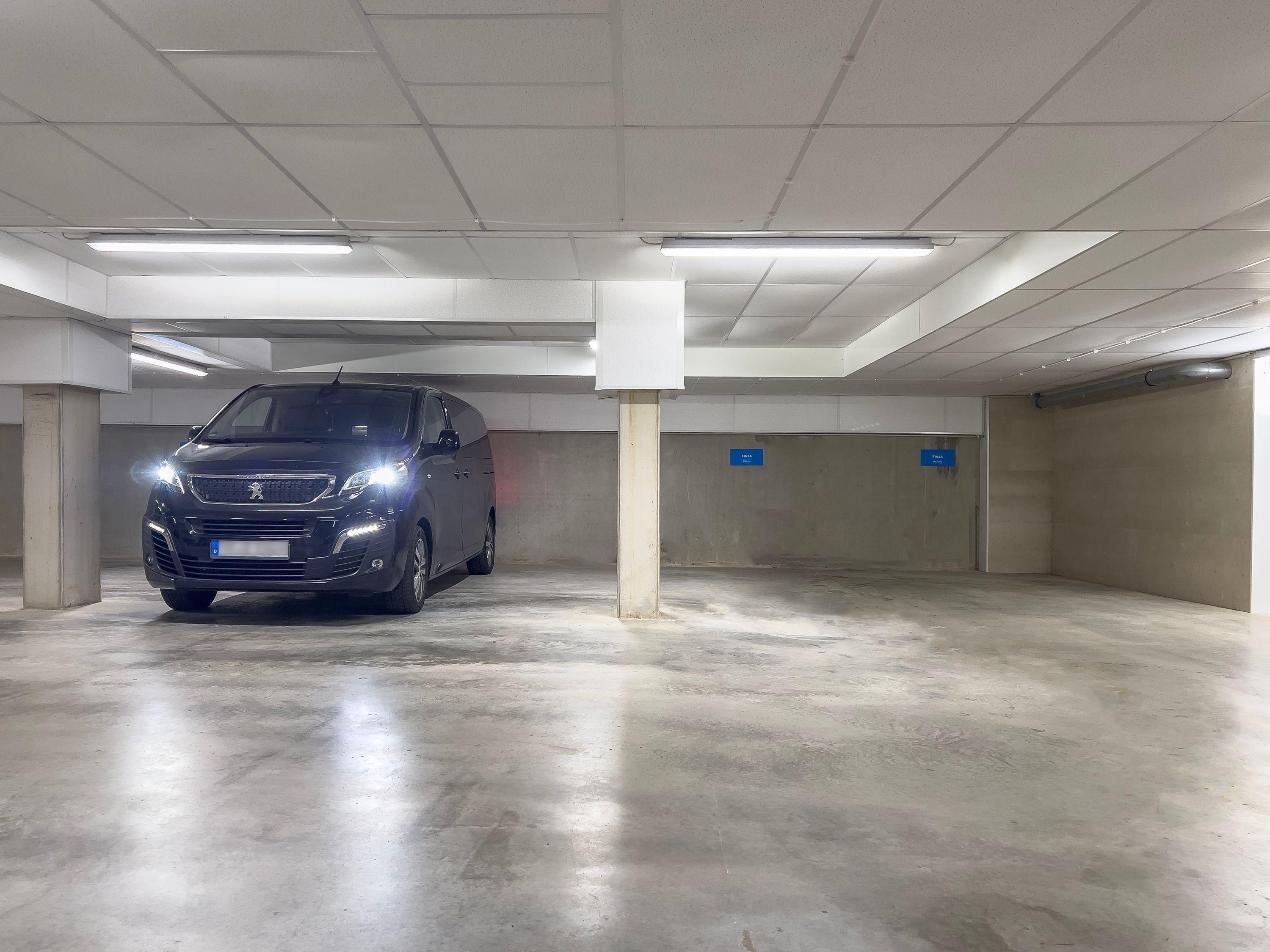 Ein kostenfreier Tiefgaragen-Stellplatz gehört zum Apartment und befindet sich in der Hermannstraße 5. Die Durchfahrthöhe beträgt 2,10 m.