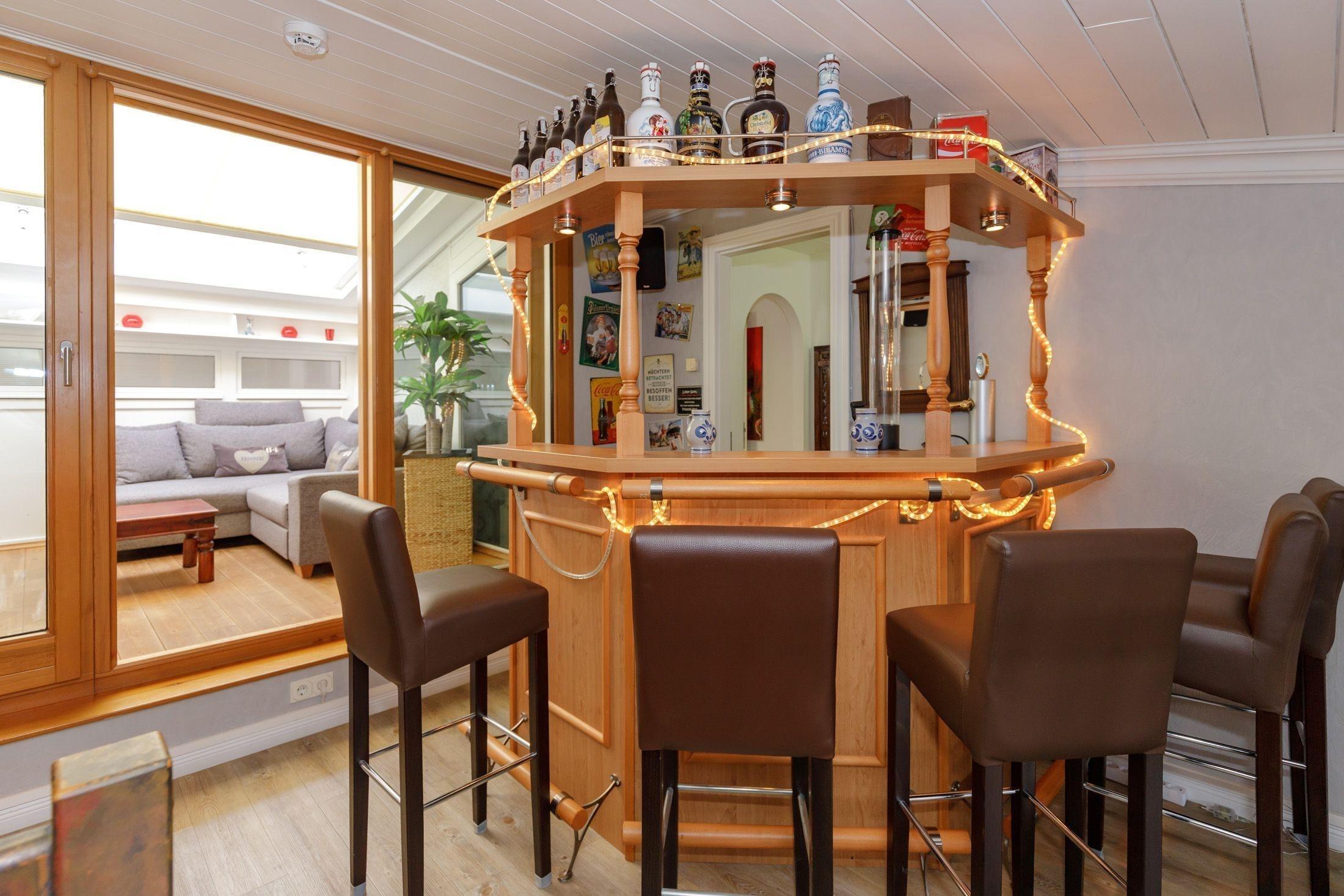 Im oberen Bereich der Wohnung befindet sich das Highlight: Ein schöner Wintergarten mit Glasdach, sodass Sie hier Sonne satt genießen können. Der offene Wohnbereich ist ebenfalls mit exklusiven Möbeln eingerichtet. Hifi-Anlage und ein Flatscreen-TV sorgen für Entertainment.