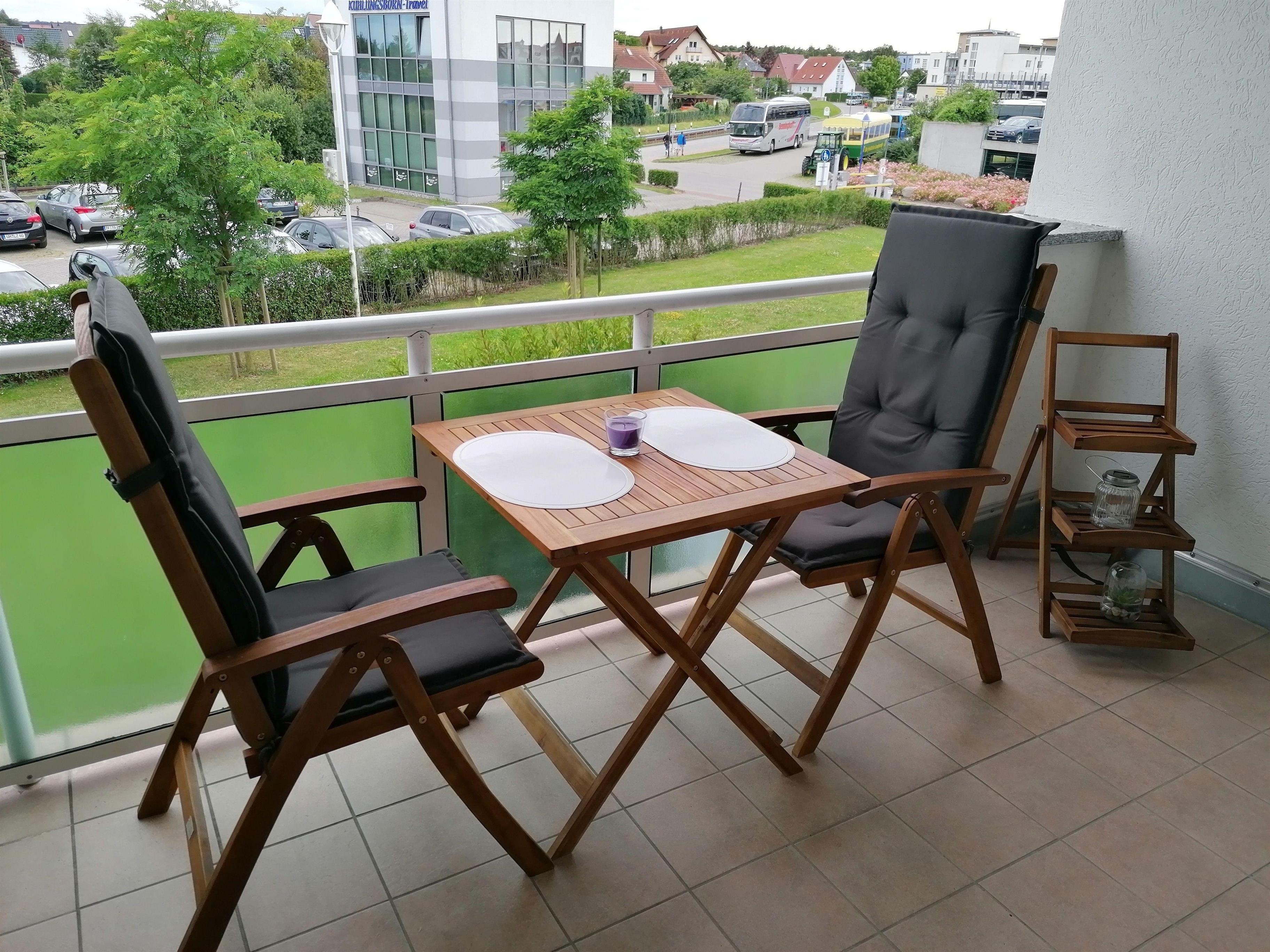 An Ihre Wohnung grenzt ein kleiner Balkon, der zur Südseite ausgerichtet ist. Der Balkon ist hübsch möbliert, sodass Sie hier gemütlich verweilen können, die Sonne genießen und am Abend einen ereignisreichen Tag gemeinsam ausklingen lassen können. Ostsee-Feeling pur!