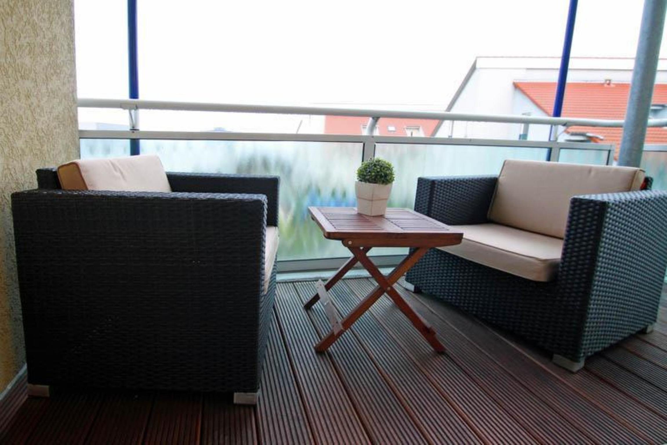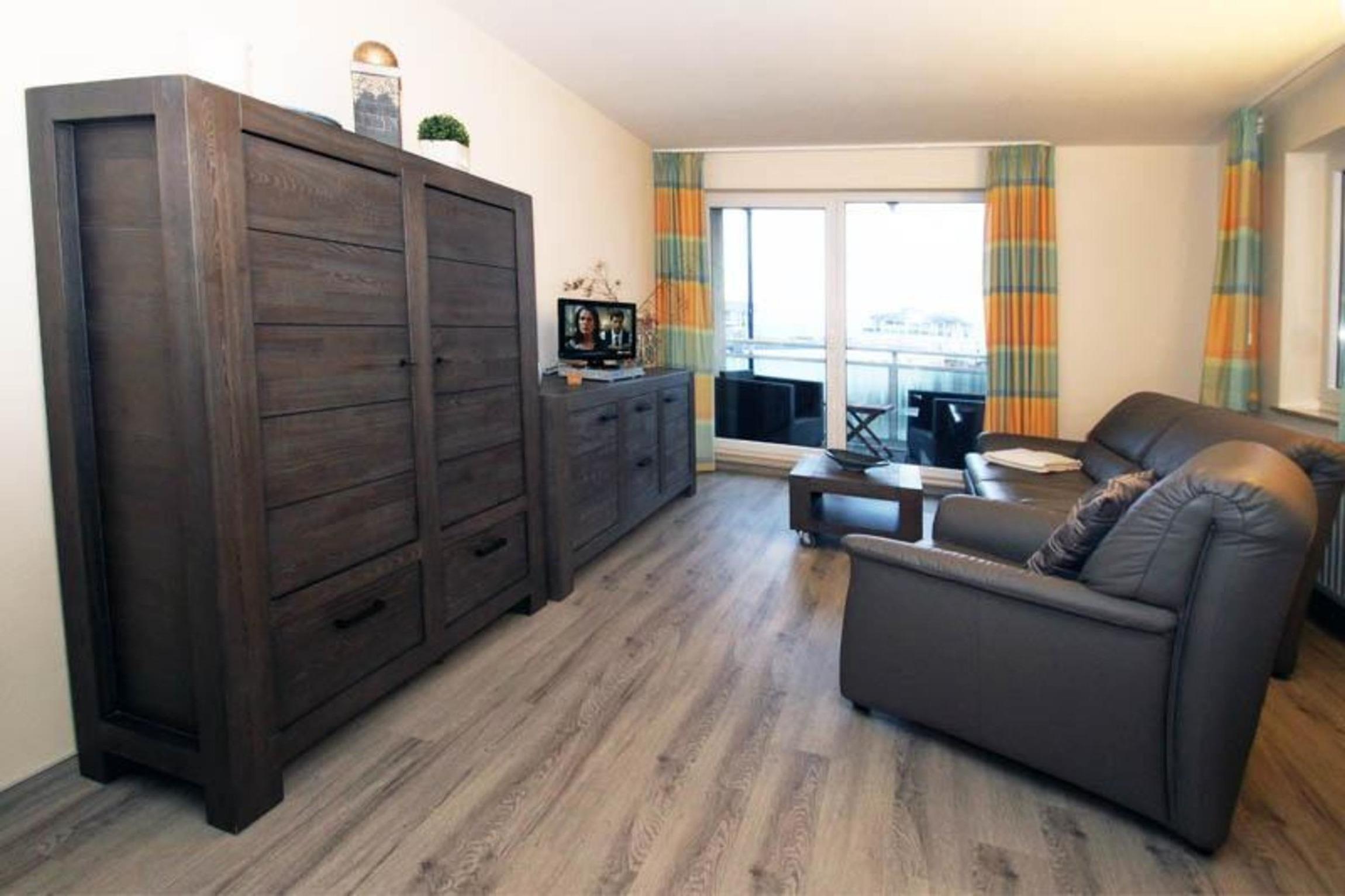 Zur Wohnung gehört ein windgeschützter und überdachter Balkon mit Meerblick (Nordseite), der direkt vom Wohnzimmer aus betreten werden kann. Der Balkon ist mit gemütlichen Lounge-Sesseln ausgestattet, hier können Sie gemeinsam einen ereignisreichen Urlaubstag, dazu noch mit Blick auf das Meer, bei einem leckeren Getränk gemütlich ausklingen lassen. Ostsee-Urlaub pur!