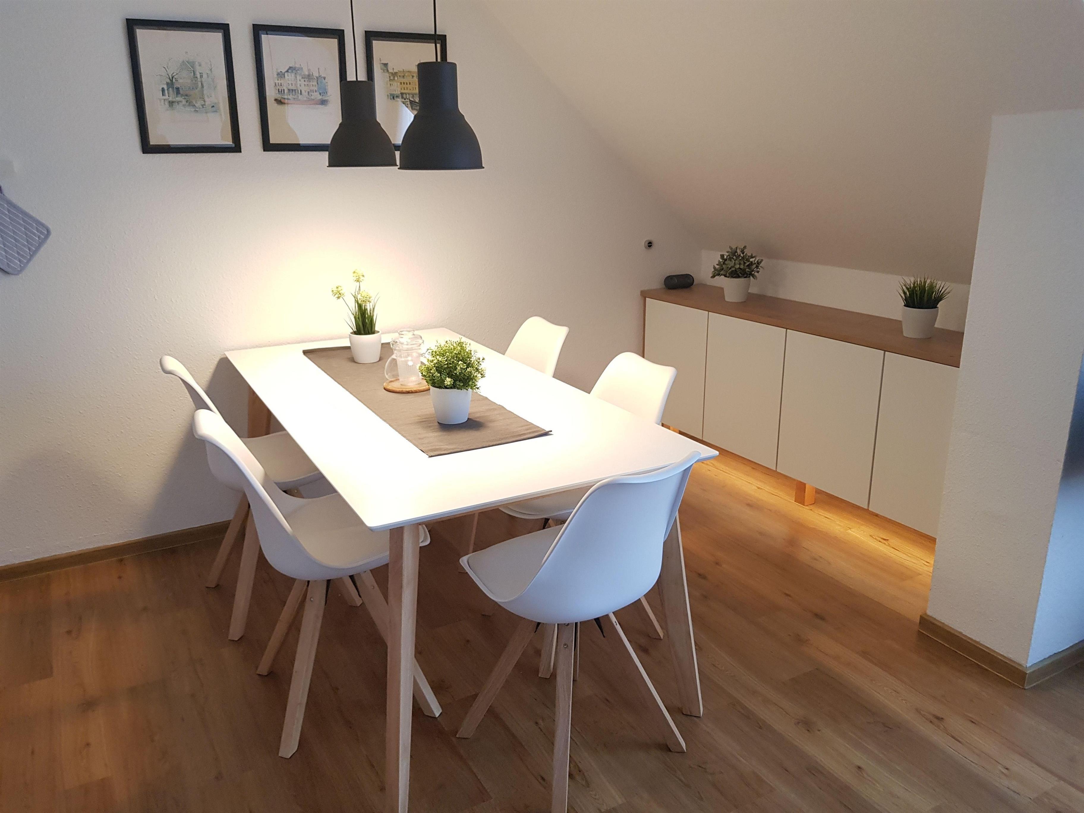in der ansprechenden, 63 qm großen Ferienwohnung für bis zu 4 Personen. Sie erstreckt sich über zwei Ebenen im Obergeschoss eines Vier-Familienhauses in Kühlungsborn-West.