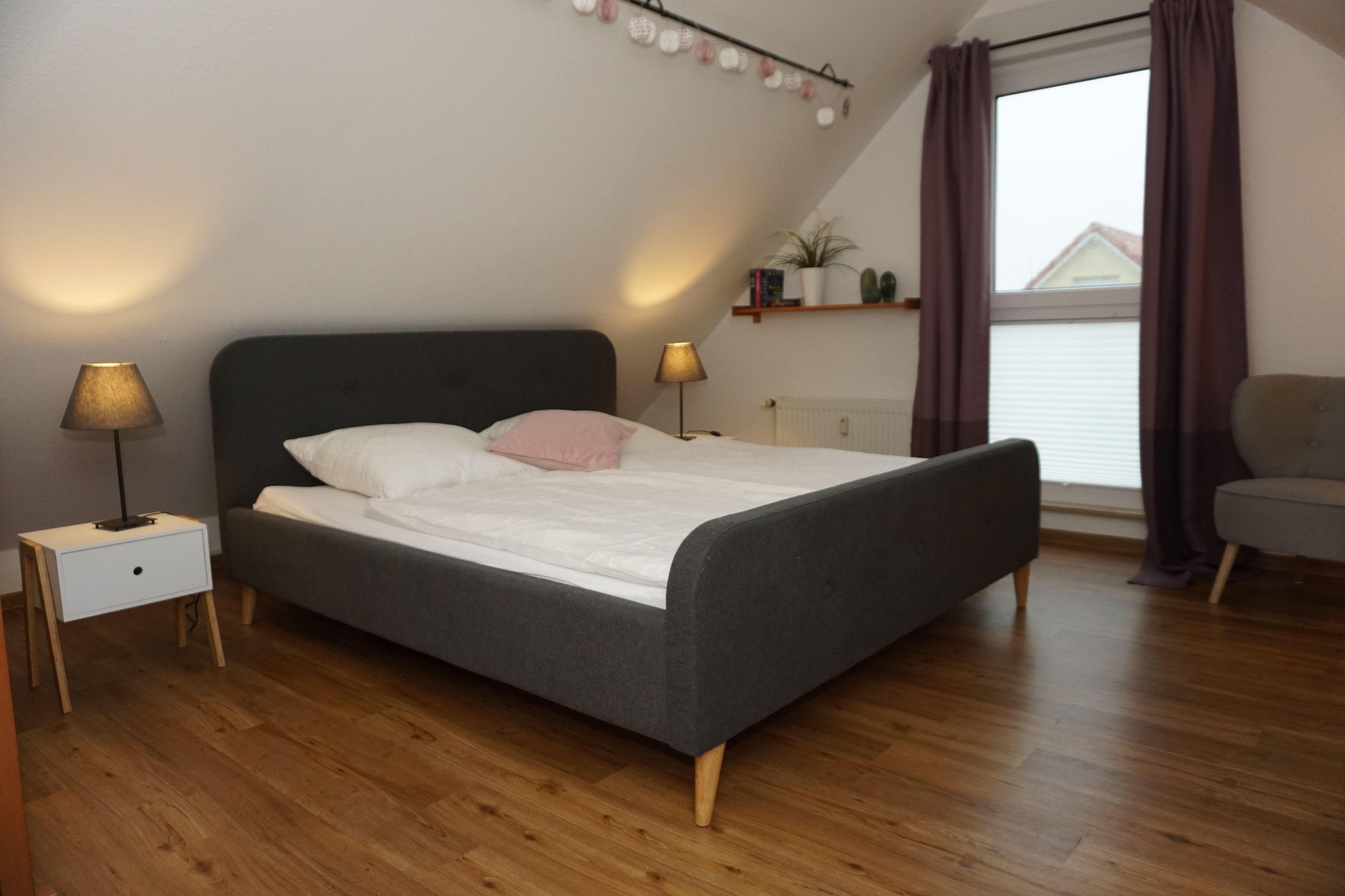 Im Dachgeschoss befindet sich das zweite Schlafzimmer, ebenfalls mit einem großen, bequemen Doppelbett eingerichtet. Auch hier