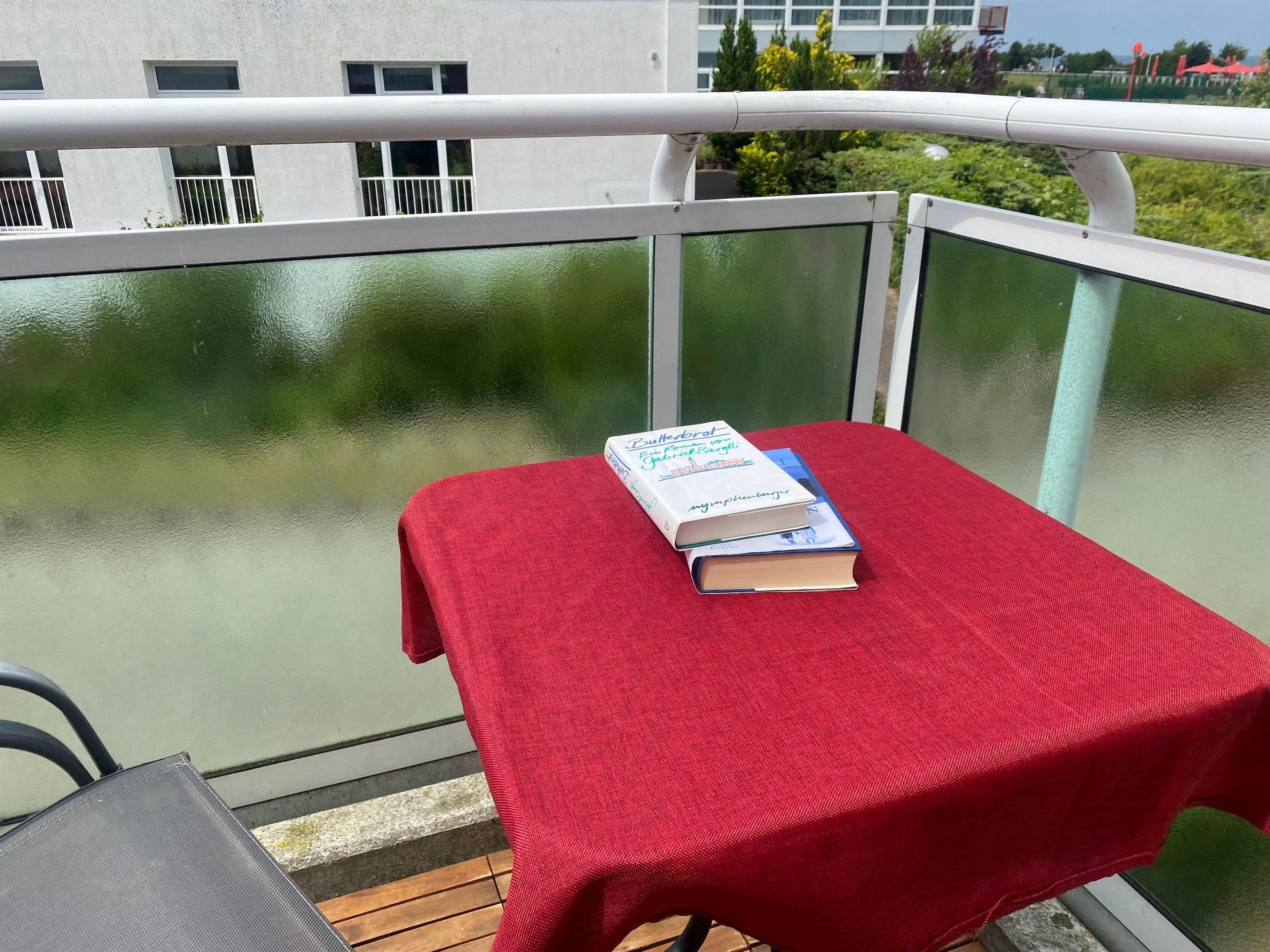 An Ihre Wohnung grenzt ein Balkon zur Südwestseite, den Sie direkt von Ihrem Wohnzimmer aus betreten können. Hübsche Balkonmöbel laden hier zum Verweilen ein, so können Sie bei schönem Wetter die Sonne genießen oder abends bei einem leckeren Getränk einen ereignisreichen Tag gemeinsam ausklingen lassen.