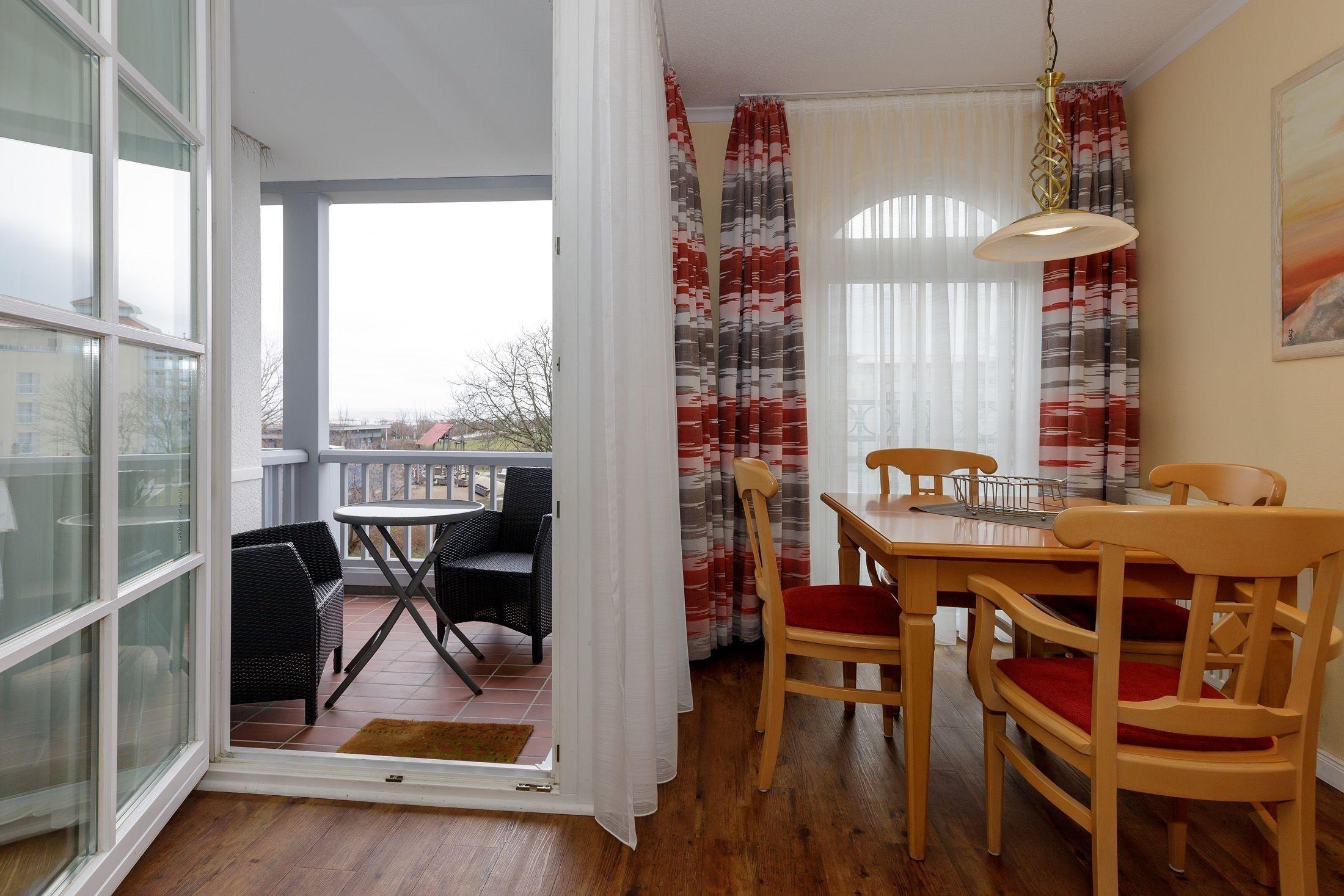 Der Essbereich rundet den Wohn- und Küchenbereich mit Platz für 4 Personen ab. Genießen Sie bei einem ausgedehnten Frühstück den Blick nach draußen bis hin zum Yachthafen.