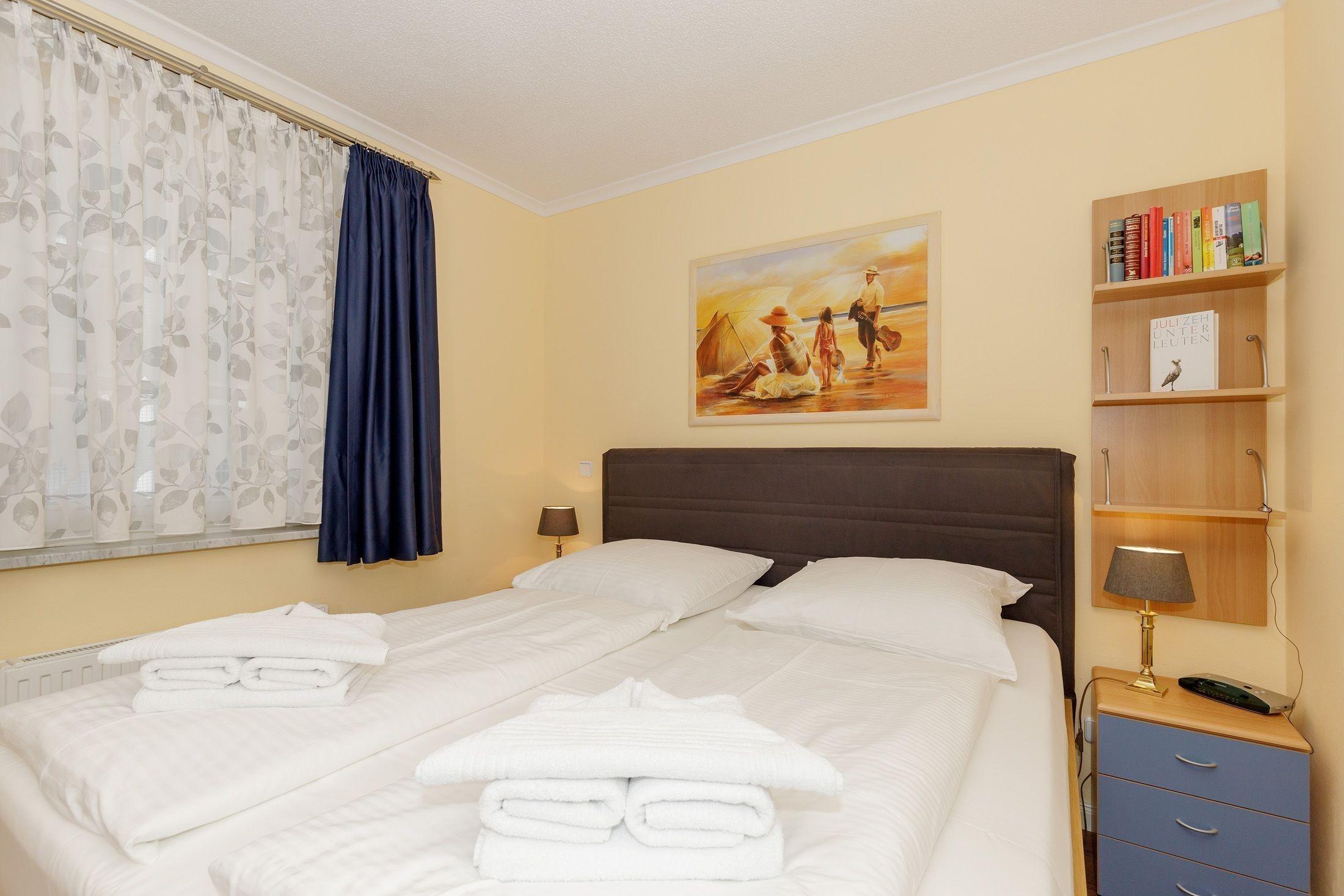 Im Schlafzimmer finden Sie im großen Boxspringbett erholsamen Schlaf und einen Kleiderschrank, in dem Sie ihre Urlaubsgarderobe unterbringen können. Ihre Koffer können Sie gerne im vorhandenen Abstellraum unterbringen.