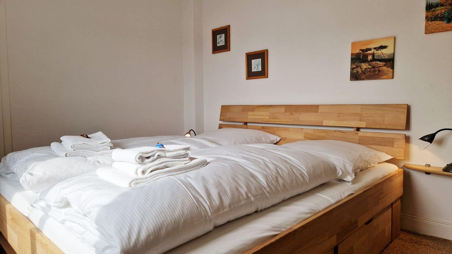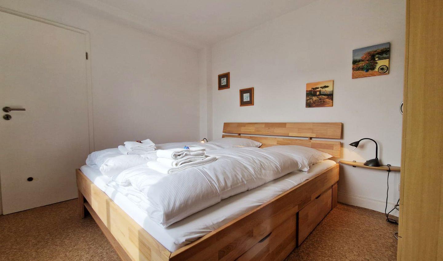 2 Zimmer, ca 30 qm, Wohnzimmer mit Schlafcouch, Küchenzeile mit Mikrowelle, Schlafzimmer mit Doppelbett, Dusche und WC, PKW - Stellplatz