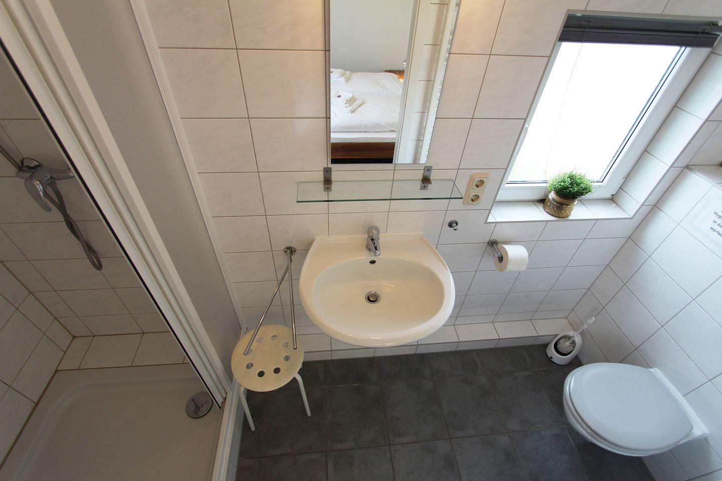 Die Ferienwohnung hat einen Wohnbereich mit gemütlichem Ecksofa, einen Kleiderschrank, Zugang zum Balkon nach Westen und Kochnische. Diese bietet eine Mikrowelle, Kaffeemaschine, Toaster, einen 2-Plattenherd sowie einen Kühlschrank. Das Schlafzimmer verfügt über einen Doppelbett. und Zugang zum Duschbad, welches ein Tageslichtfenster hat sowie eine fast ebenerdige Dusche und WC.
