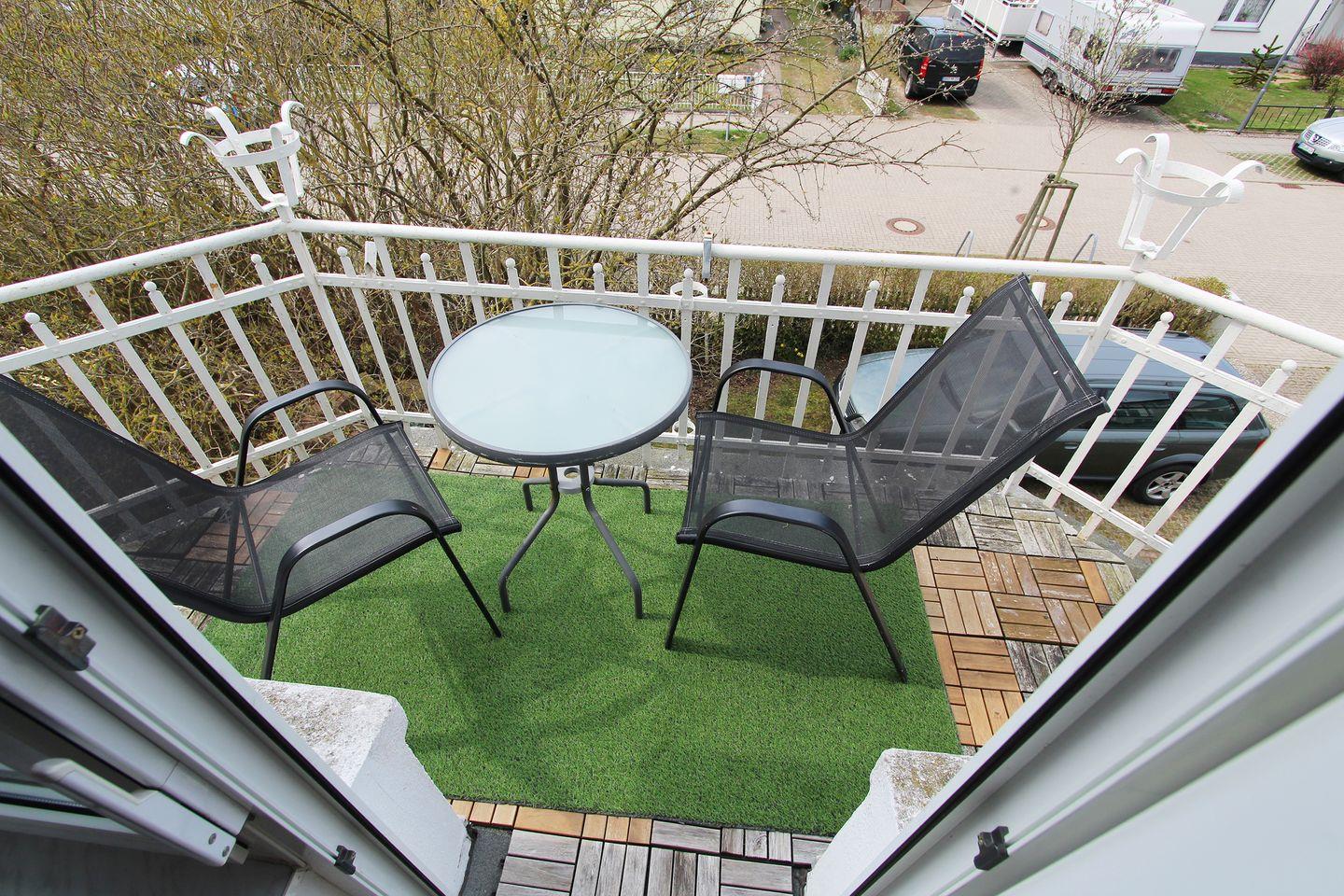 2 Zimmer, ca 33 qm, Wohnzimmer mit Schlafcouch, Küchenzeile mit Mikrowelle, Schlafzimmer mit Doppelbett, Dusche und WC, Balkon, PKW - Stellplatz