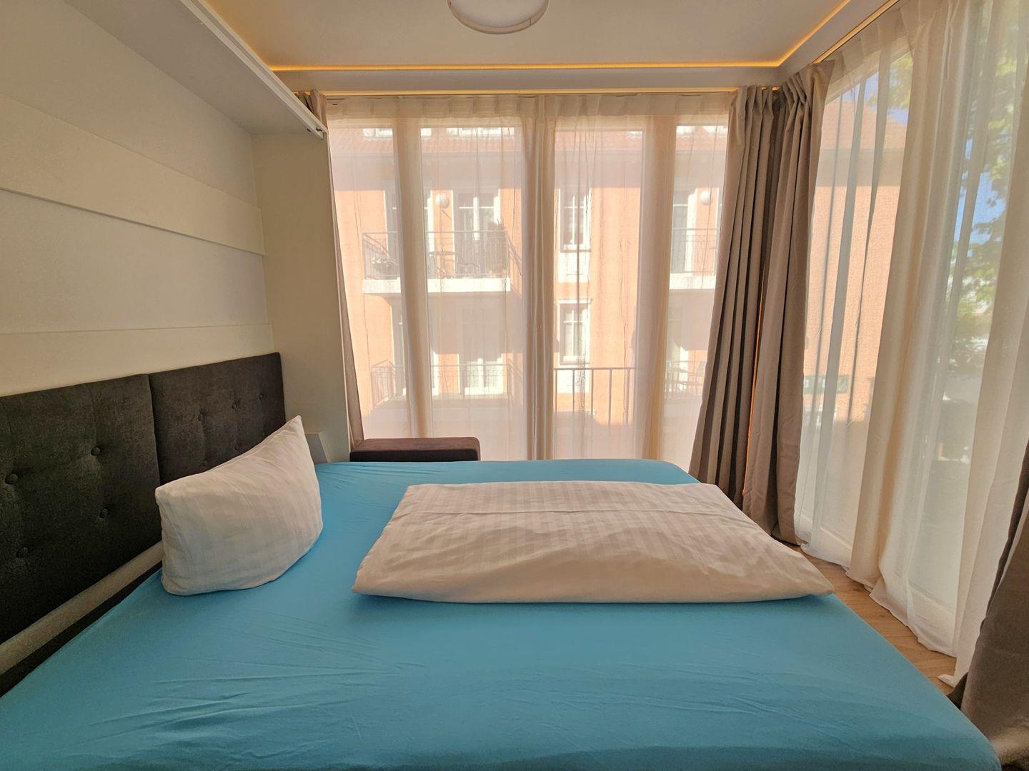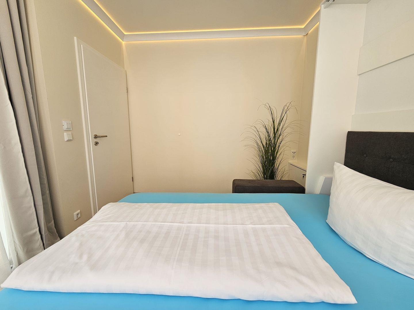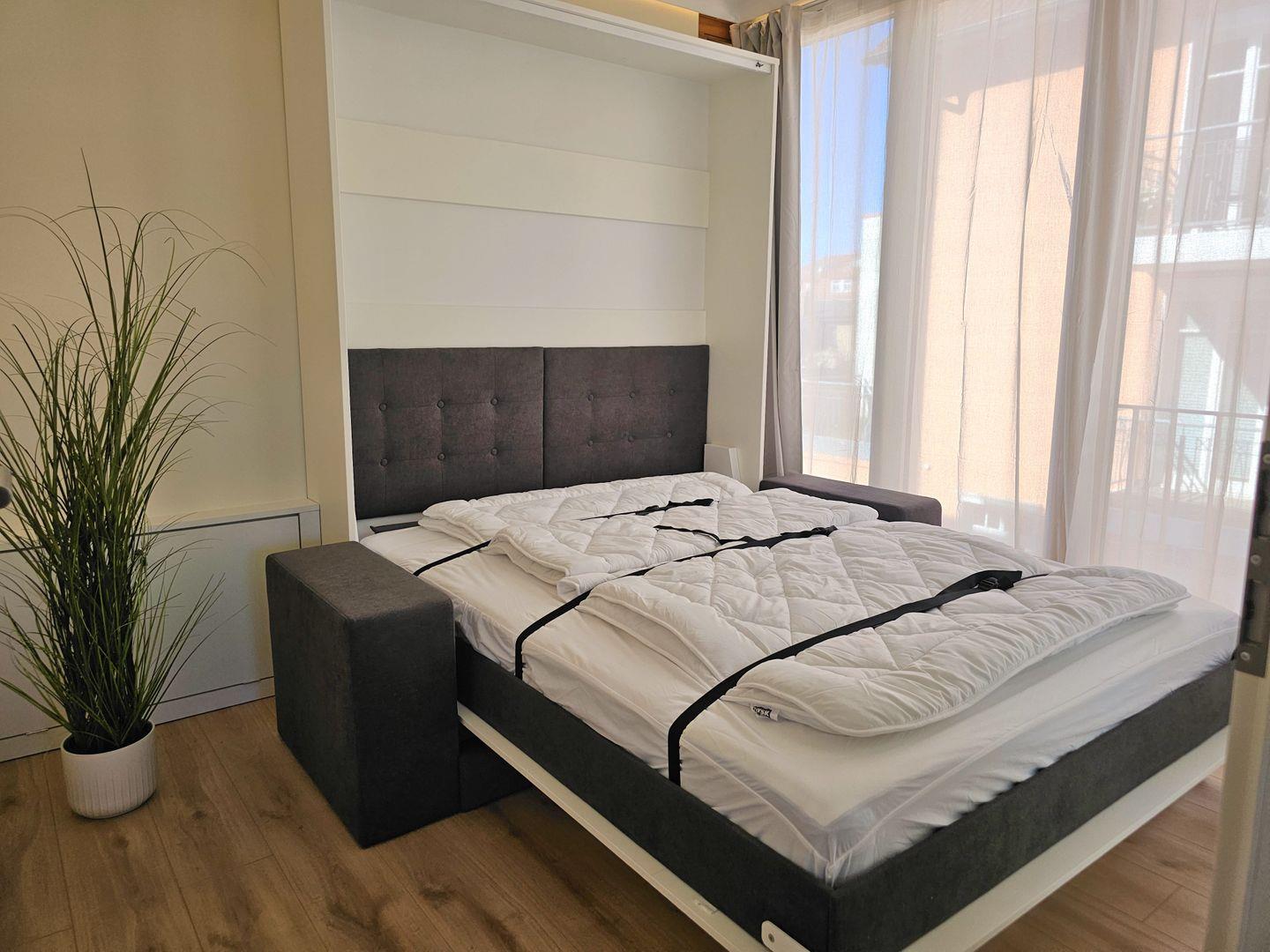 Das liebevoll eingerichtete Schlafzimmer mit einem bequemen Boxspringbett, Nachttischen und einem geräumigen Kleiderschrank bietet den perfekten Rückzugsort. Das zweite Schlafzimmer mit einem komfortablen Schrankbett (140x200), das tagsüber als gemütliche Couch dient, lädt zum Entspannen und Träumen ein.