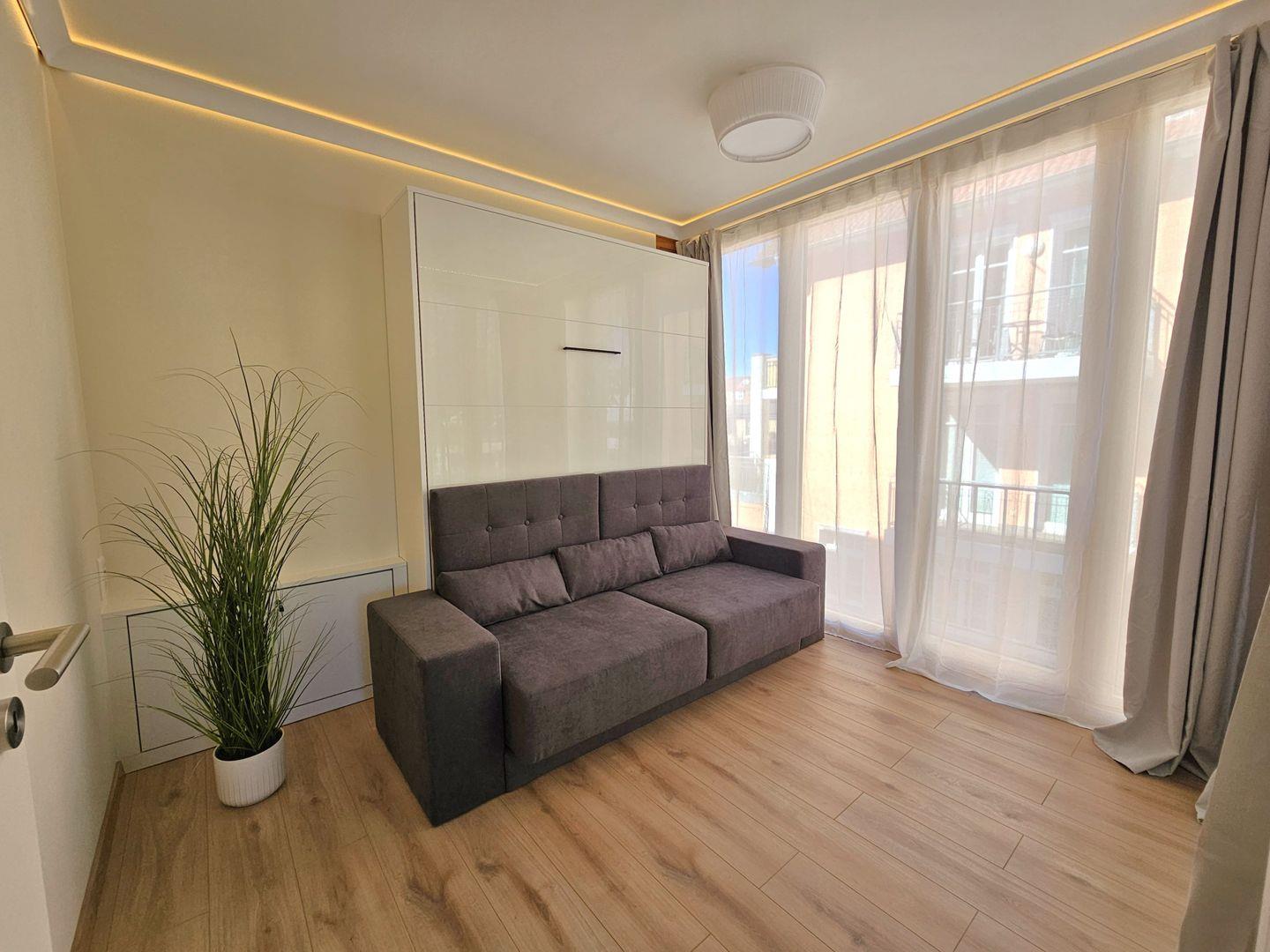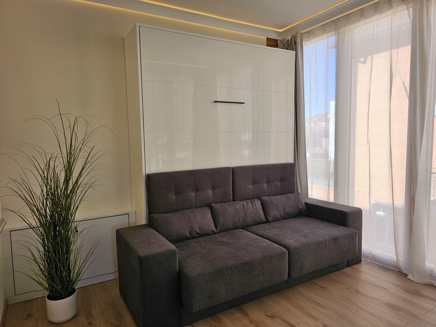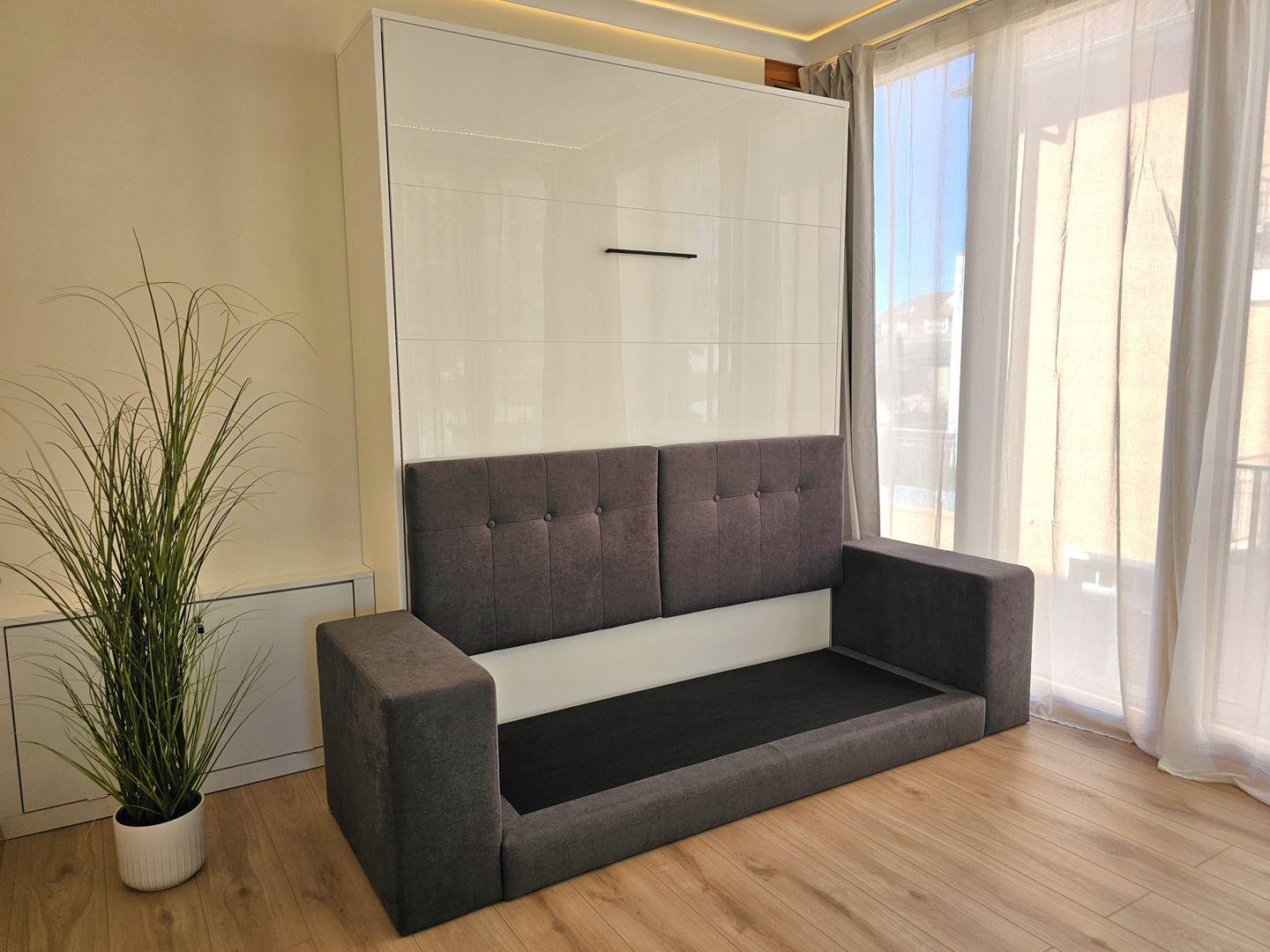 Das liebevoll eingerichtete Schlafzimmer mit einem bequemen Boxspringbett, Nachttischen und einem geräumigen Kleiderschrank bietet den perfekten Rückzugsort. Das zweite Schlafzimmer mit einem komfortablen Schrankbett (140x200), das tagsüber als gemütliche Couch dient, lädt zum Entspannen und Träumen ein.