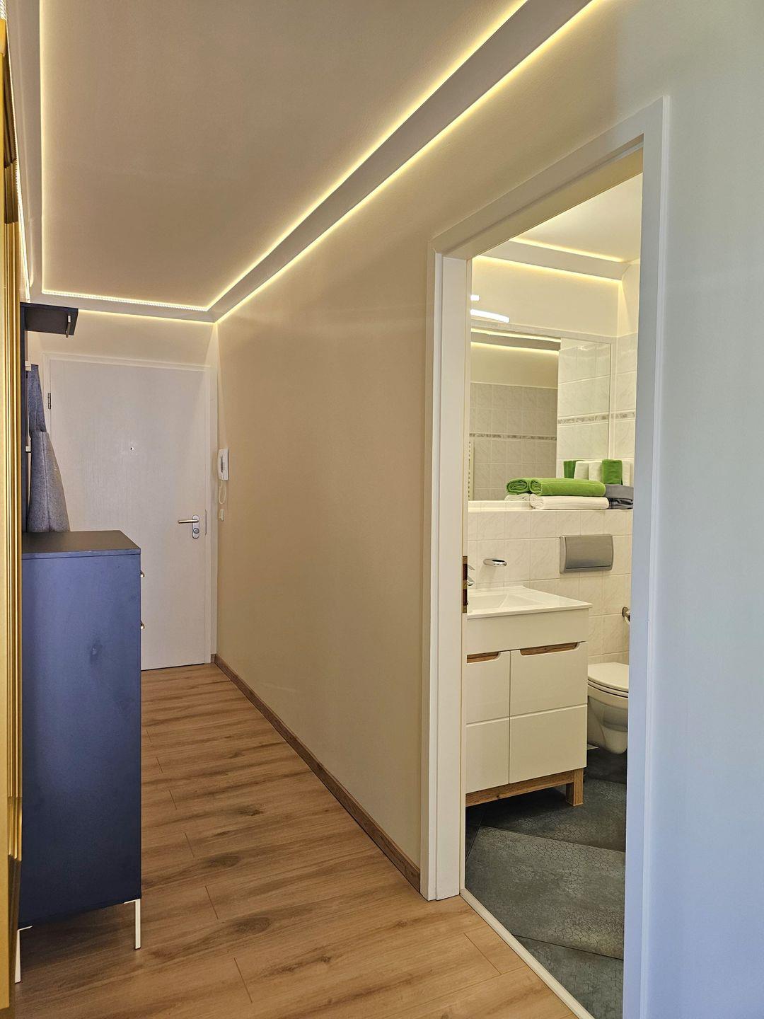 Ihre Garderobe finden Sie in der praktischen Garderobe im Flur, die Platz für Jacken und Schuhe bietet.