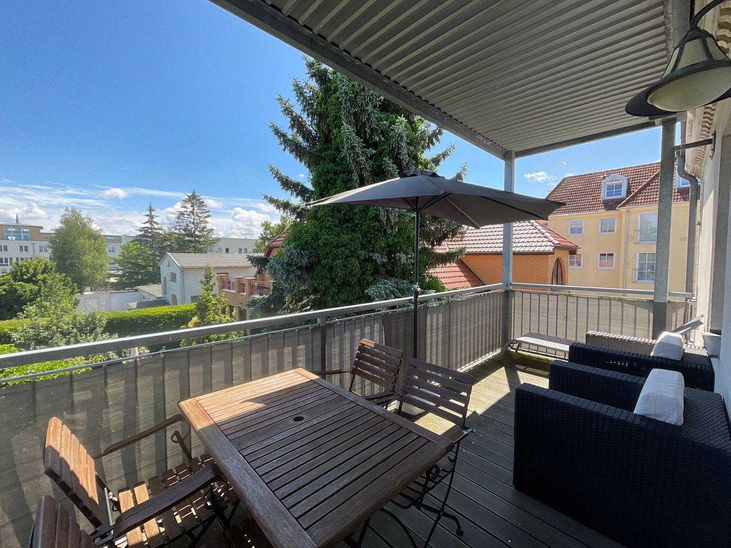 Das Appartment 4 befindet sich im Obergeschoß der Villa Magda , ist ca. 45 m² groß und hat zusätzlich einen Balkon sowie eine große überdachte Terrasse.