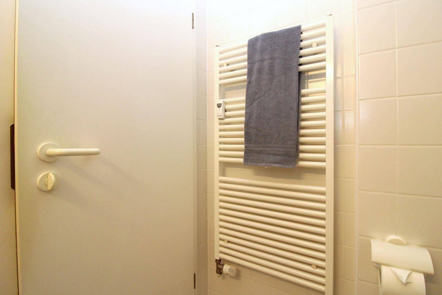 Das Badezimmer verfügt über eine Dusche, Waschbecken mit Unterschrank, WC, Handtuch-Heizkörper, Föhn sowie ausreichend Ablagemöglichkeiten.