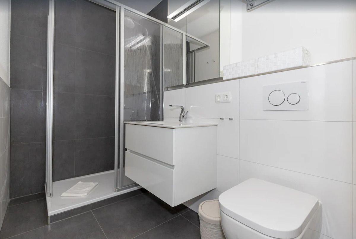 Das moderne Badezimmer verfügt über eine begehbare Dusche (seniorenfreundlich(!) mit niedrigem Einstieg), Waschbecken mit Spiegelschrank und Unterschrank, WC, Föhn, Handtuch-Heizkörper sowie ausreichend Ablagemöglichkeiten.