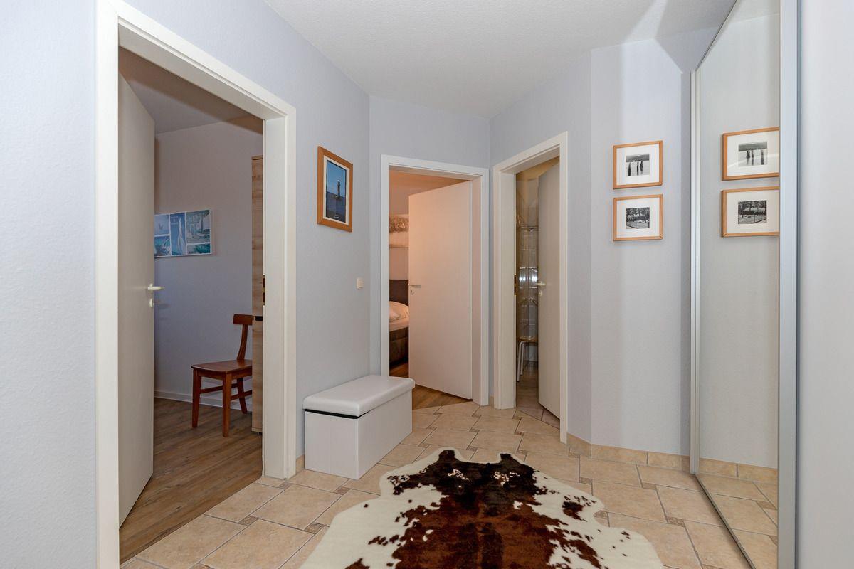 Von der Diele mit Garderobe, Spiegel und Kommode erreichen Sie bequem alle Räume Ihrer Ferienwohnung.