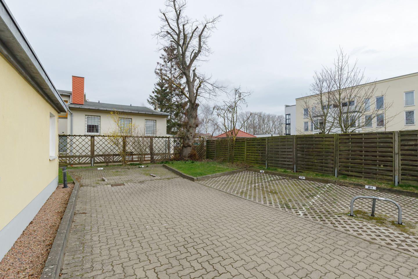Ihr Auto können Sie kostenfrei auf einem zu Ihrer Wohnung gehörenden PKW-Stellplatz (Nr. 16) direkt hinter dem Haus parken, Ihre Fahrräder können in Fahrradständern im Hofbereich des Hauses abgestellt werden. Sofern Sie keine eigenen Fahrräder mitbringen, können Sie diese bei Interesse bei einem Fahrradverleih in unmittelbarer Nähe Ihrer Wohnanlage mieten. Auf Wunsch werden Ihnen die Fahrräder auch gerne direkt zu Ihrer Urlaubsunterkunft geliefert.