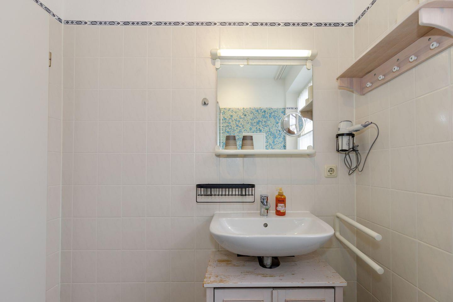 Weiterhin sind in der Wohnung ein Bügeleisen und ein Bügelbrett vorhanden. Für das Waschen Ihrer Urlaubsgarderobe stehen Ihnen im 2. Obergeschoss gemeinschaftliche Waschmaschinen und Wäschetrockner zur Verfügung – diese können von allen Gästen kostenpflichtig (Münzeinwurf) mitbenutzt werden.