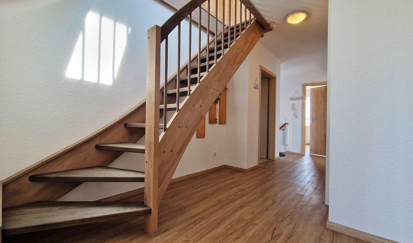 Die Ferienwohnung befindet sich im Ober- sowie Dachgeschoß eines Einfamilienhauses.