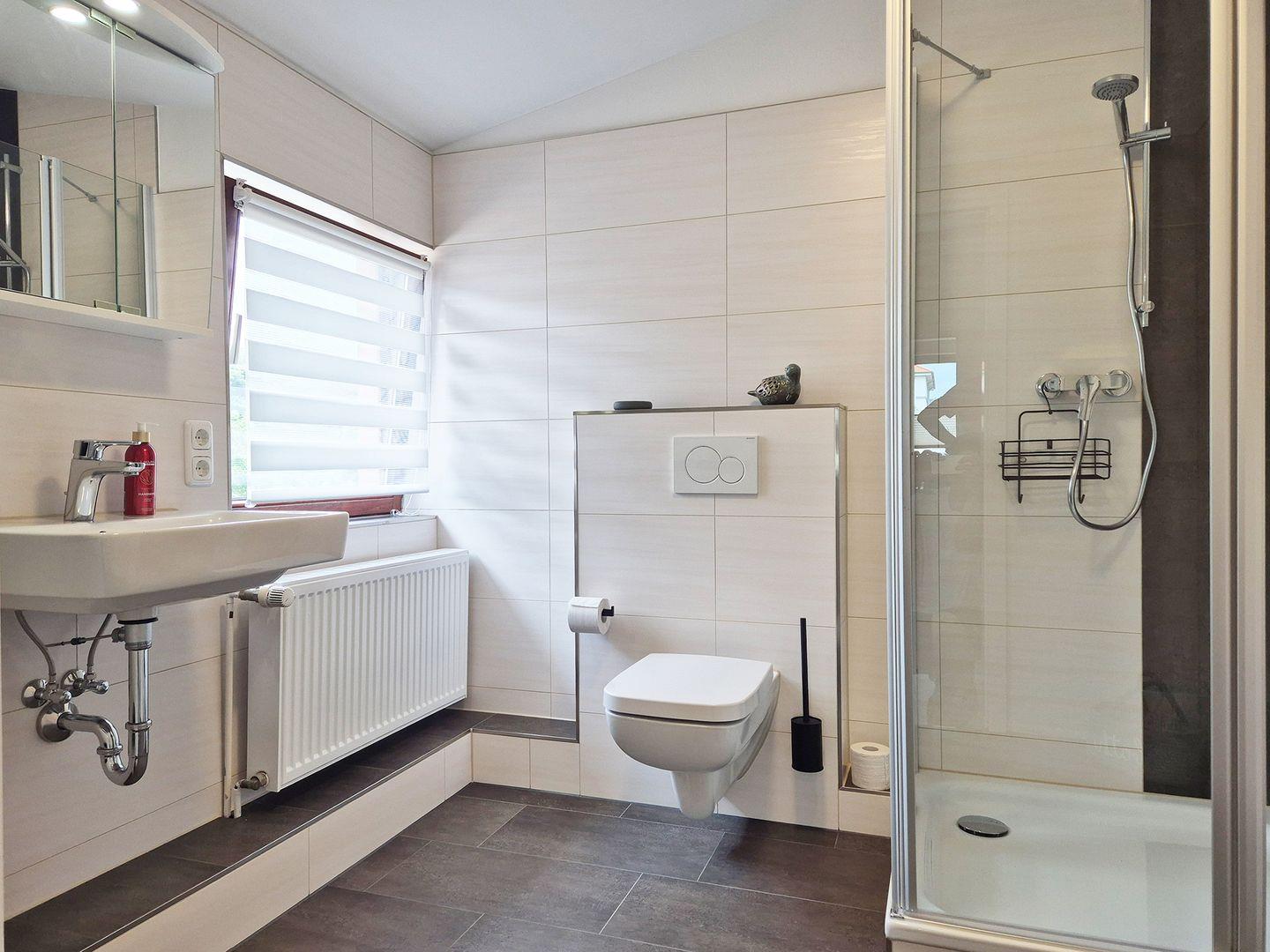 Das Tageslichtbad ist mit einer Dusche, WC, Waschbecken, Spiegel und Fenster ausgestattet. Die Ferienwohnung wurde zuletzt 2025 renoviert und präsentiert sich dementsprechend in einem modernen und gepflegten Zustand.