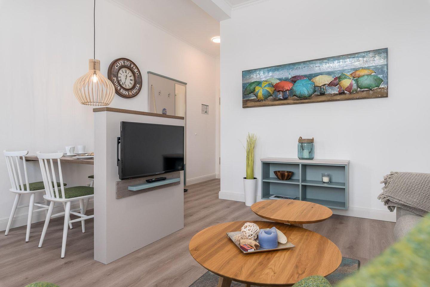 Das Westside Arthotel Apartment 210 in Kühlungsborn bietet auf ca. 43 m² eine moderne Unterkunft mit Balkon, offenem Wohn- und Küchenbereich, kostenfreiem WLAN, privatem Parkplatz und barrierefreiem Zugang. Zum Strand sind es nur 200 Meter, Restaurants und Einkaufsmöglichkeiten befinden sich in unmittelbarer Nähe.
