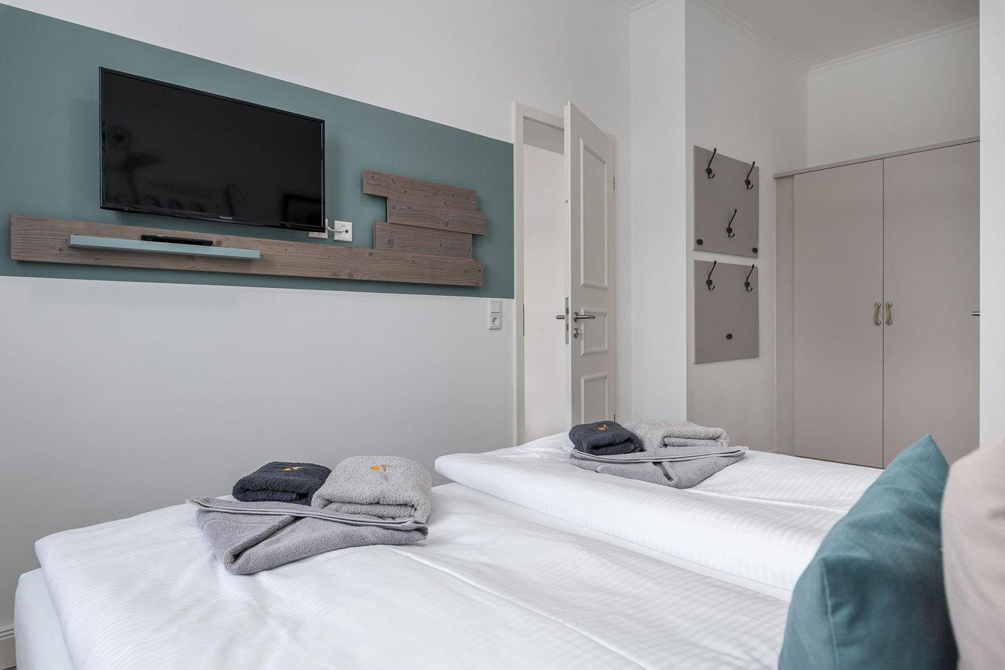 Eine Erstausstattung an Hand- und Badetüchern liegt im Apartment bereit und die