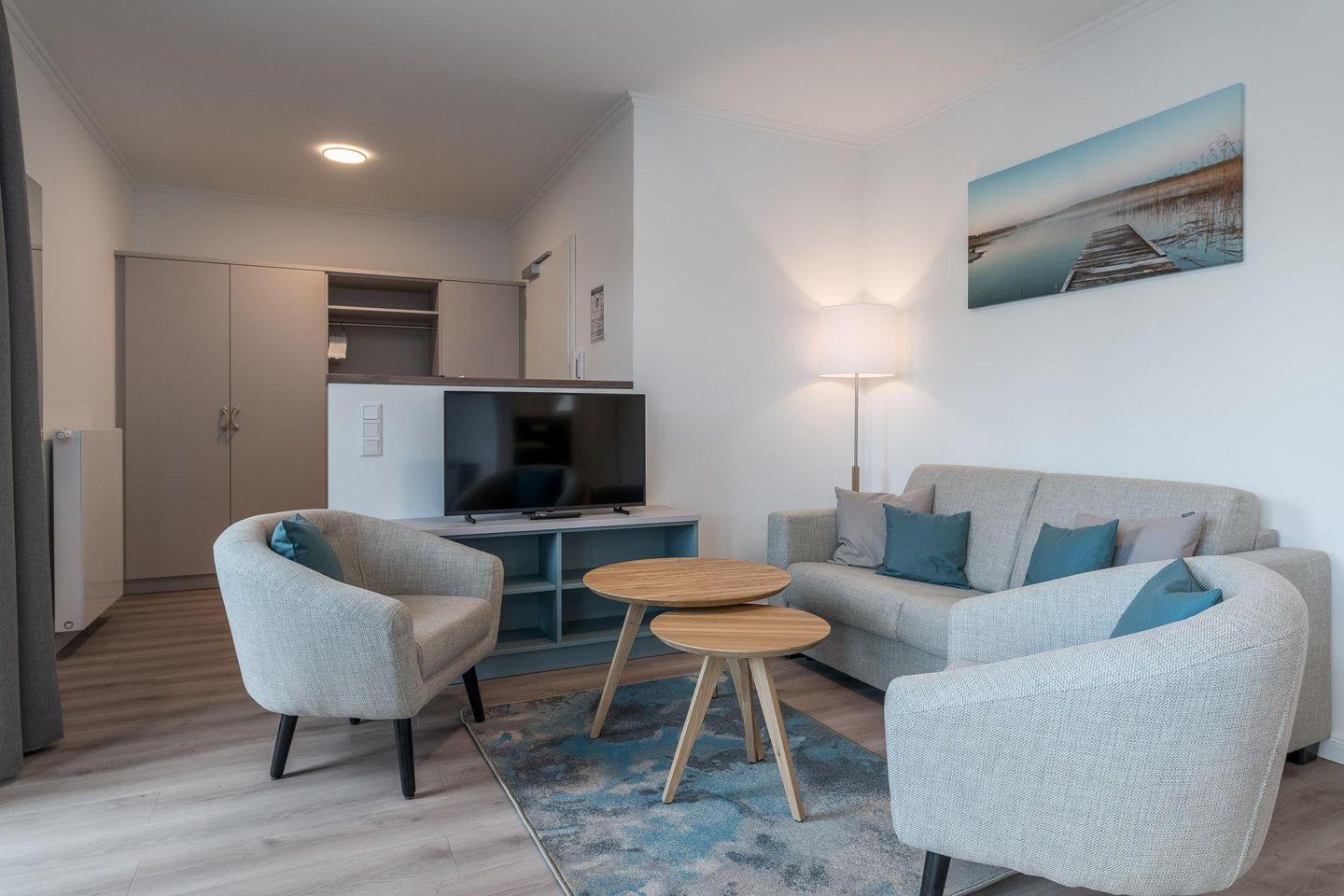 Zu Ihrem Apartment gehört ebenfalls ein großer und lichtdurchfluteter Wohn- und