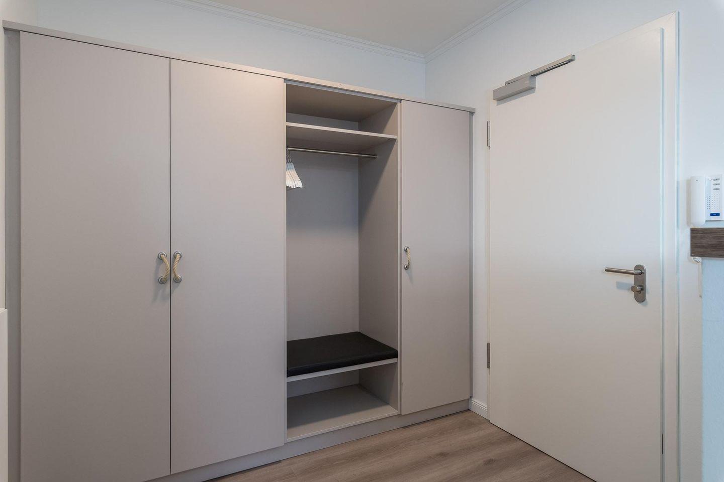 Kleiderschrank und ein TV-Gerät. Die zweite Schlafmöglichkeit ist ein bequemes
