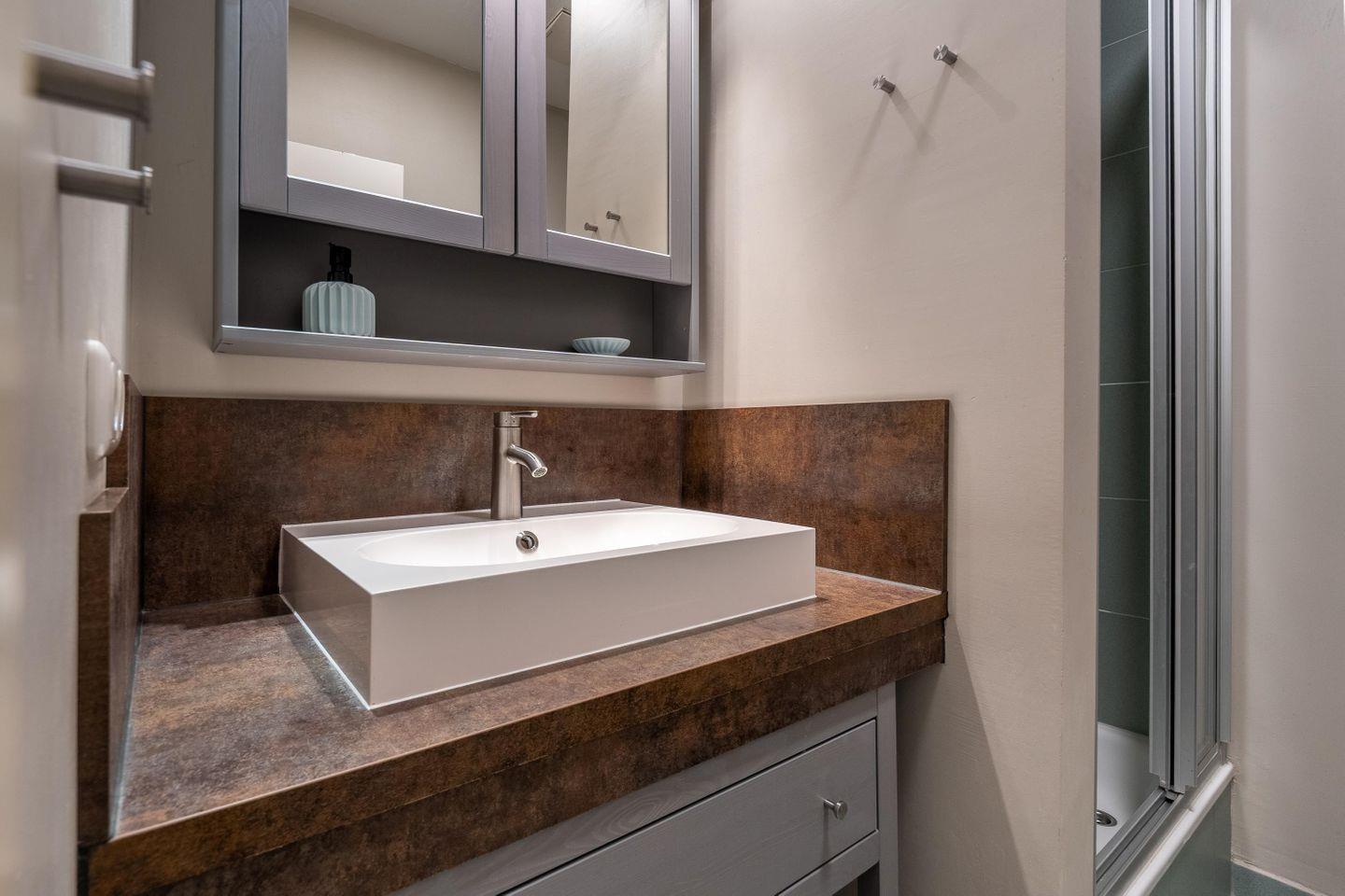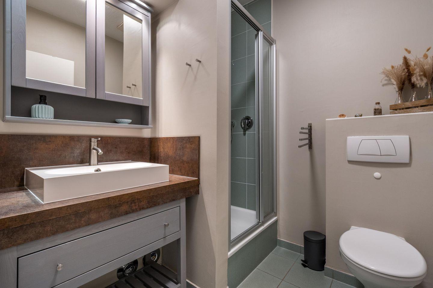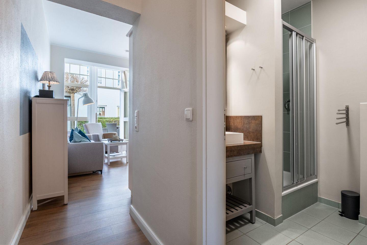 Das Bad verfügt über eine Dusche und einen Haartrockner.