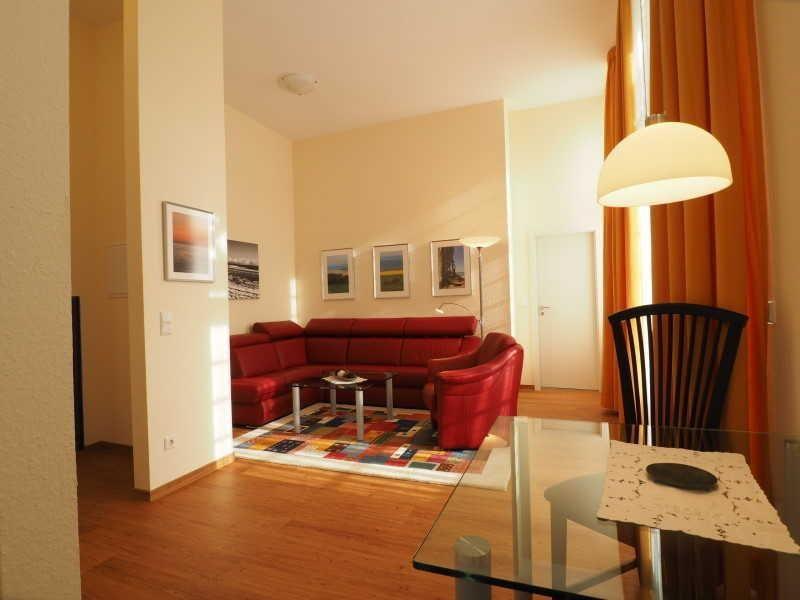 Diese liebevoll eingerichtete 43-m²-Unterkunft bietet den perfekten Rahmen für einen entspannten Urlaub. Der helle Wohnbereich mit offener Küchenzeile schafft eine einladende Atmosphäre, in der Sie sich sofort wie zu Hause fühlen. Die Küche ist vollständig ausgestattet und lässt Ihnen alle Freiheiten – vom schnellen Frühstück bis zum gemütlichen Abendessen.