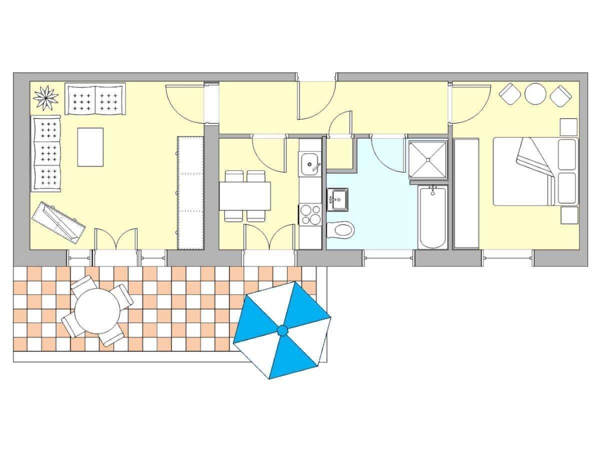 68m²-Ferienwohnung mit Balkon in strandnaher und zentraler Lage für 2 Personen