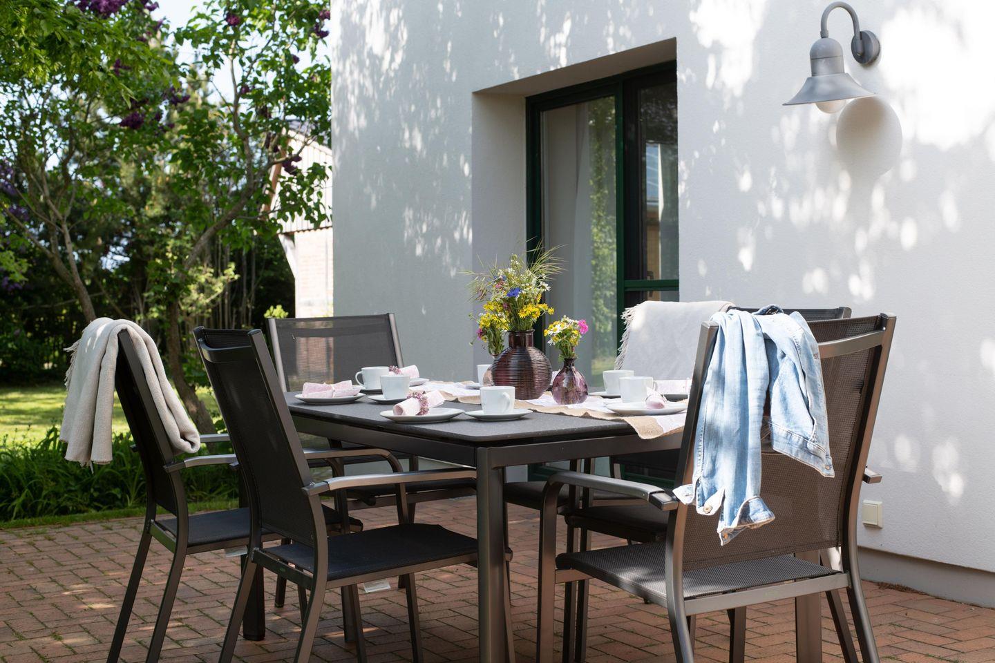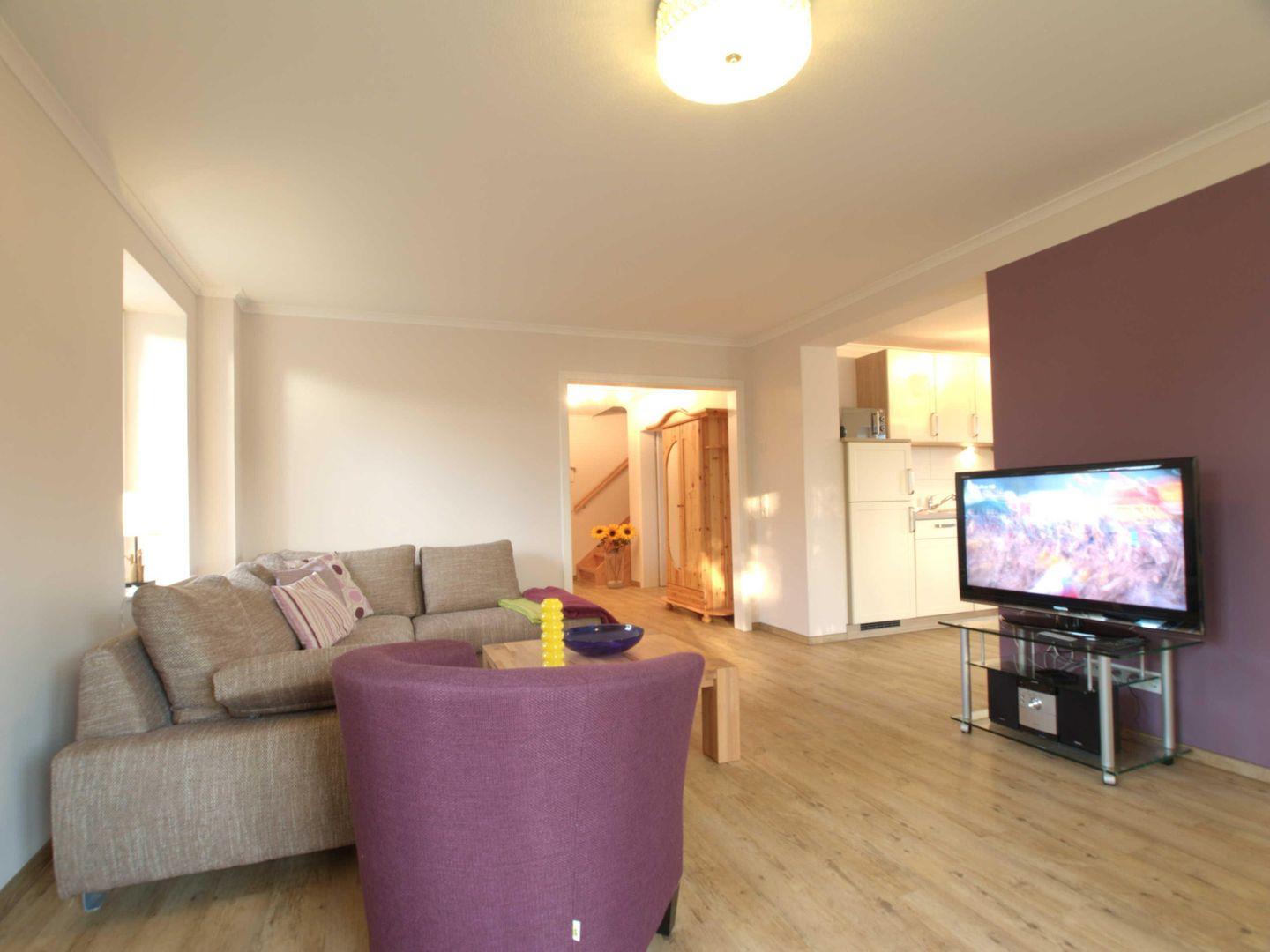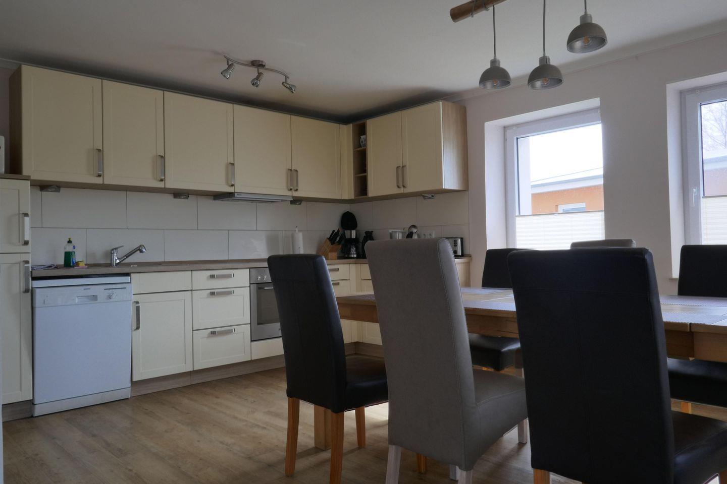 Der offene Wohn- und Essbereich verbindet modernes Design mit behaglicher Atmosphäre. Die voll ausgestattete Küche lässt mit umfangreichem Geschirr und Küchenutensilien keine Wünsche offen. Gemeinsam essen Sie im angrenzenden Essbereich oder entspannen im stilvoll eingerichteten Wohnzimmer mit Sofa und Flachbild-TV.