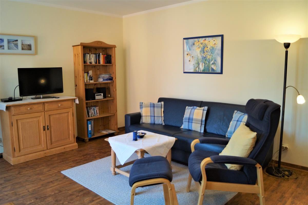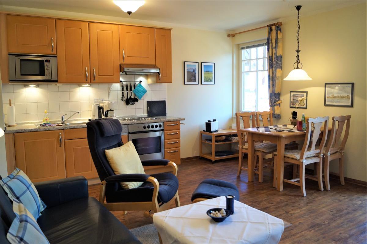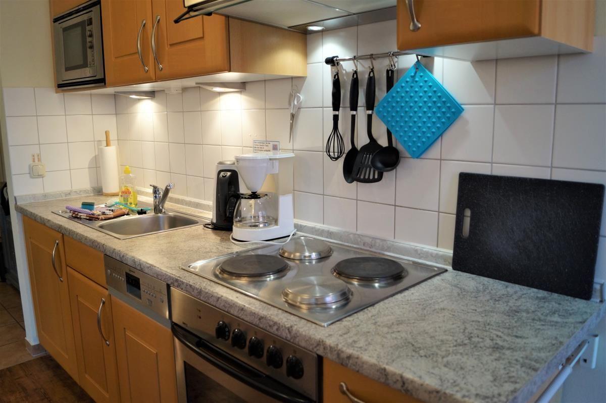 Ein gemütliches Wohnzimmer mit hochwertigen Möbeln, LCD-Flatscreen-TV, CD-Stereo-System und DVD-Player lassen auch bei etwas schlechterem Wetter keine Wünsche offen. Außerdem verfügt die Wohnung über einen WLAN-Anschluss. Die moderne voll ausgestattete Küchenzeile mit Geschirrspüler, Backofen und 4-Platten-Herd ermöglichen eine perfekte Versorgung auch im Urlaub.