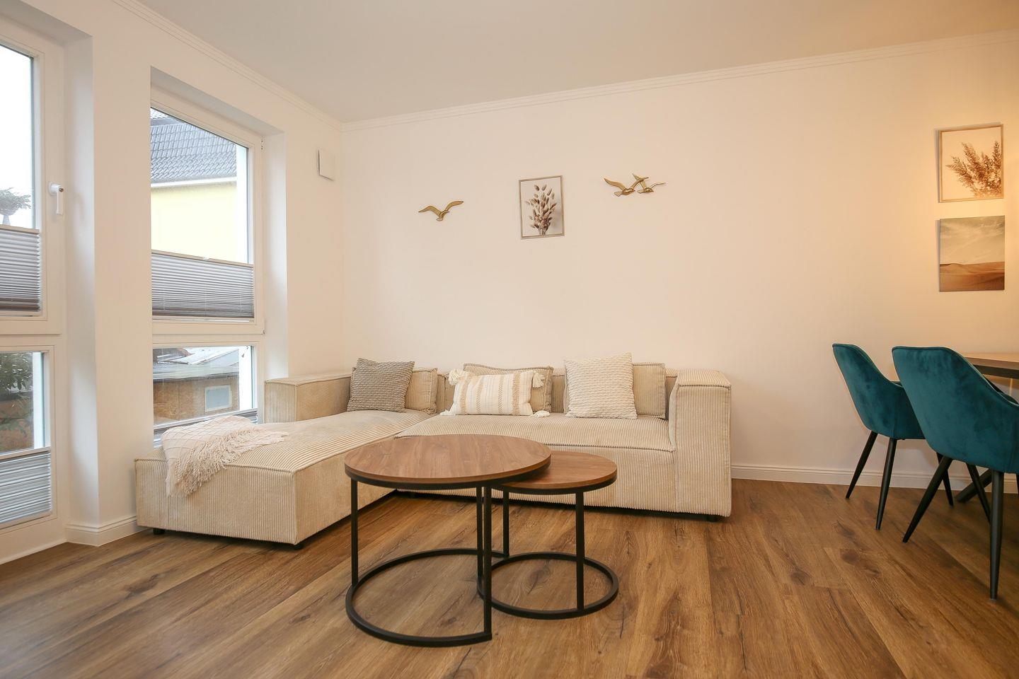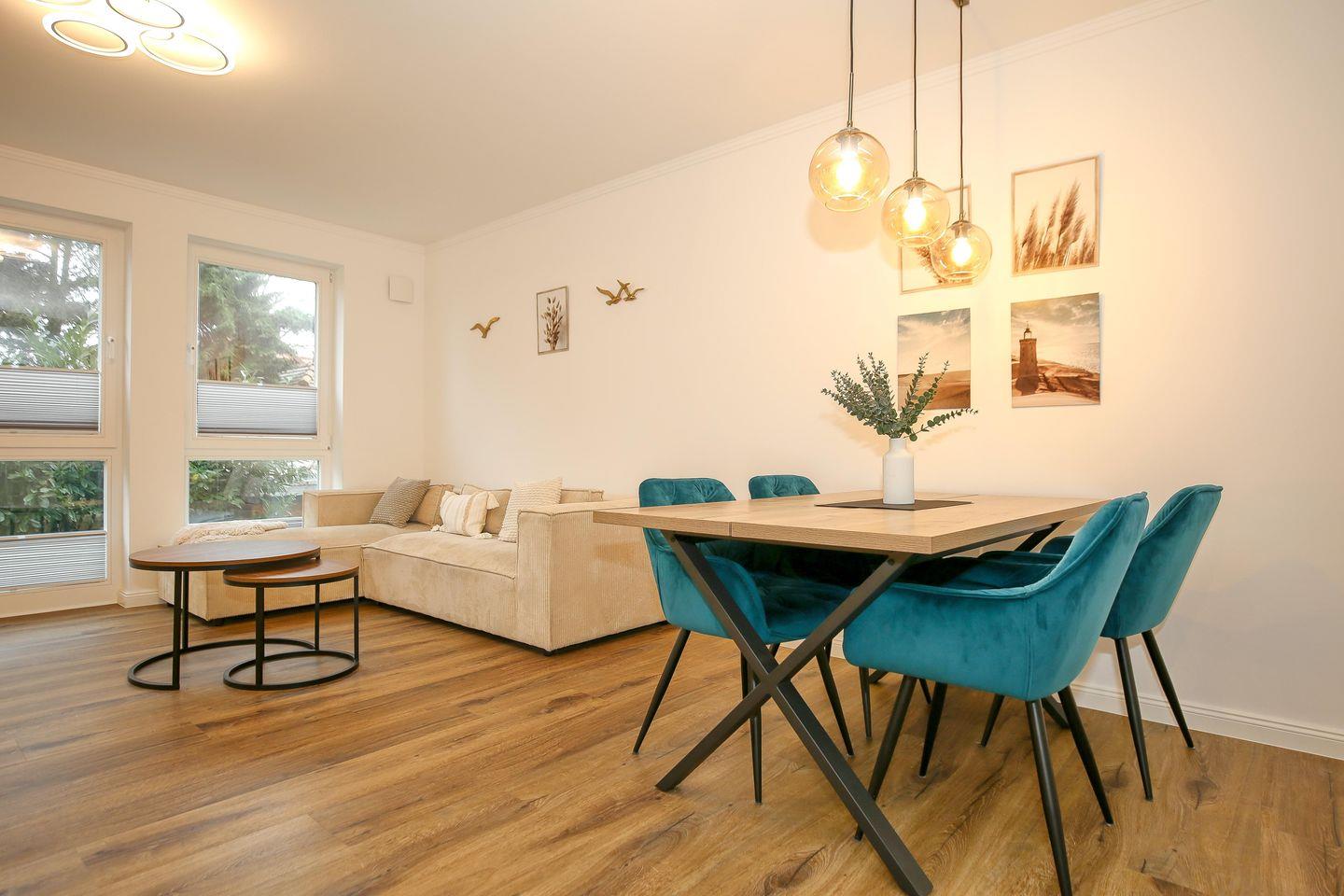 In dieser luxuriösen Ferienwohnung auf ca. 55 m² wird eine hochwertige Ausstattung großgeschrieben. Die moderne 2-Zimmer-Wohnung mit Nord-Ausrichtung befindet sich im Hochparterre der Villa Siegfried und bietet bis zu 2 Personen einen erholsamen Urlaub an der Ostsee – nach nur ca. 50 Metern bist du direkt am Strand. Die Wohnung ist in einen Wohnbereich, einen kombinierten Ess- und Küchenbereich sowie einem Schlafzimmer und einem Tageslichtbad mit Dusche aufgeteilt. Auf dem Balkon kannst du entspannte Stunden mit einem wunderschönen Blick auf die Ostsee genießen.