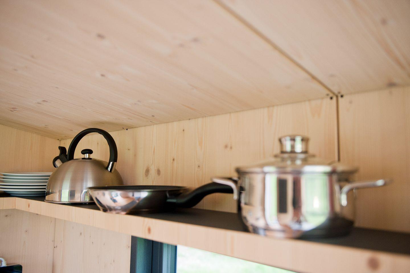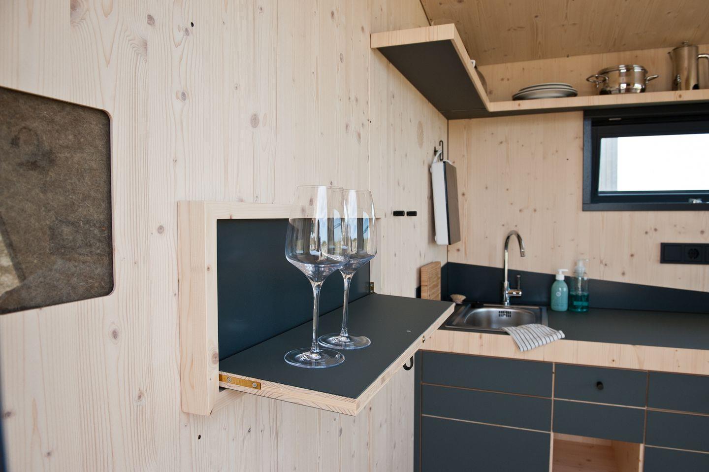 Die neuen Green Tiny Sleep Spaces sind ideal geeignet für Fahrradfahrer, Wanderer und andere Naturliebhaber, die nach einer nachhaltigen und stilvollen Übernachtungsmöglichkeit suchen. Auf fünf Quadratmetern findest du alles, was du für einen Kurzaufenthalt benötigst: ein komfortables Bett für zwei Personen, eine Kochnische mit Waschbecken und ausreichend Staumöglichkeiten. Duschen und Toiletten findest du in den Waschräumen der Flugschule Dolmar. Die kleinen Geschwister der Green Tiny Houses vom Typ Pioneer werden ebenfalls in Schleswig-Holstein gebaut und bestehen ausschließlich aus wohngesunden Materialien. Außerdem bieten wir dir eine klimaneutrale Übernachtung dank Kompensation aller anfallenden CO2-Emissionen.