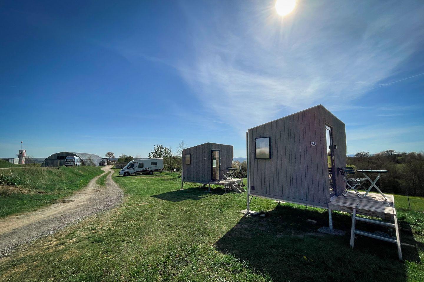 Klein, kleiner, Tiny Sleep Space. Übernachte in unseren nachhaltigen Mini-Cabins direkt am Flugplatz der Flugschule Domar.