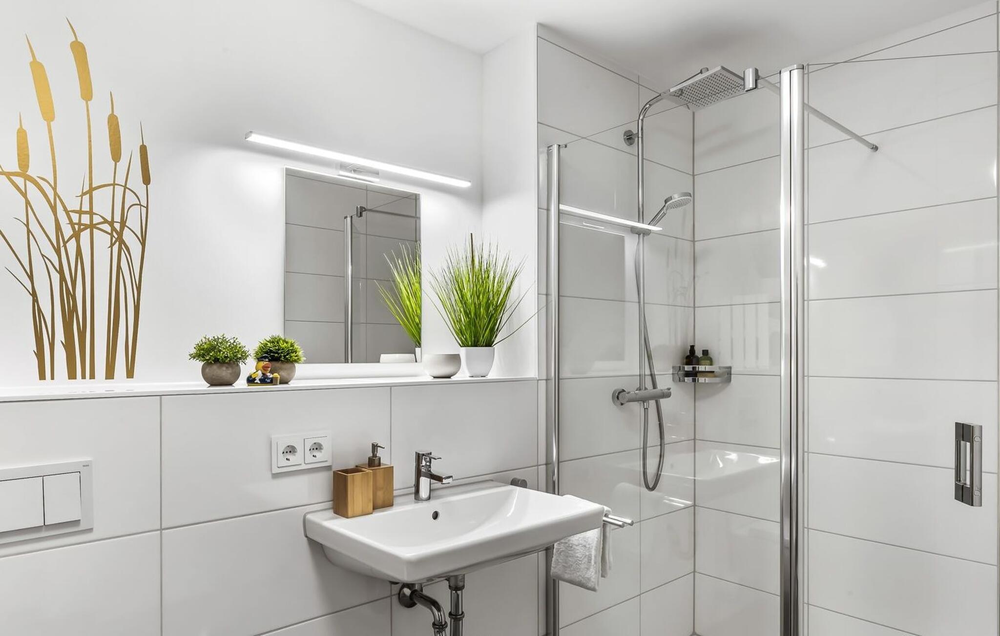 KÜSTENKIEKER er en rummelig og rummelig maisonette ferielejlighed på første og anden sal med uhindret udsigt over de naturbevarende strandenge og marker til Østersøen. Når I træder ind i ferielejligheden på første sal, begynder nedbremsningen fra allerførste øjeblik. I er direkte i lejlighedens afslapningsområde. Lejlighedens tre soveværelser er placeret på denne etage. Uanset hvilket soveværelse I vælger, kan I være sikker på en afslappende søvn. To soveværelser er udstyret med dobbeltsenge og et fjernsyn. Det tredje soveværelse inviterer jer til at sove godt med to enkeltsenge. Et andet fjernsyn er også tilgængeligt her. På denne etage er der også et veludstyret badeværelse med bruser i gulvniveau og infrarød sauna. En oase af velvære, der sikrer afslapning i hver sæson. At komme ind på anden sal og straks føle sig hjemme er én ting. Her lever KÜSTENKIEKER op til sit navn. Direkte fra stuen kommer man ind på den store terrasse med syd-sydvest orientering. Mod bagsiden med uhindret udsigt til de naturbevarende strandenge, marker og havet, er hyggelige timer garanteret. To strandstole på terrassen inviterer jer til at tilbringe uforglemmelige ferieøjeblikke. Der er også en hund strandstol til rådighed for jeres firbenede venner. At slappe af i den hyggelige opholdsstue, nyde naturens fred og ro fra gulv-til-loft vinduerne eller se tv er ren afslapning og afslapning! Hverdagen bliver mere og mere fjern... Skulle vejret nogensinde blive nordisk, vil pejsen med sin brølende ild give yderligere hygge. Det integrerede køkken er perfekt udstyret, og det er sjovt at lave mad sammen. Så nyd de færdige lækkerier på terrassen eller start en hyggelig grillaften... Det er ren ferie. Et andet komplet badeværelse med badekar runder ideelt set hele pakken af til en afslappende ferie. Bemærk venligst: OstseeResort Olpenitz er meget populært, og der bygges fortsat i parken. Ikke desto mindre kan I se frem til en 5-stjernet standard og et førsteklasses ophold. Byggeaktiviteterne kommer ikke til at forstyrre jer på ferien, og derfor gives der ikke yderligere afslag i prisen.