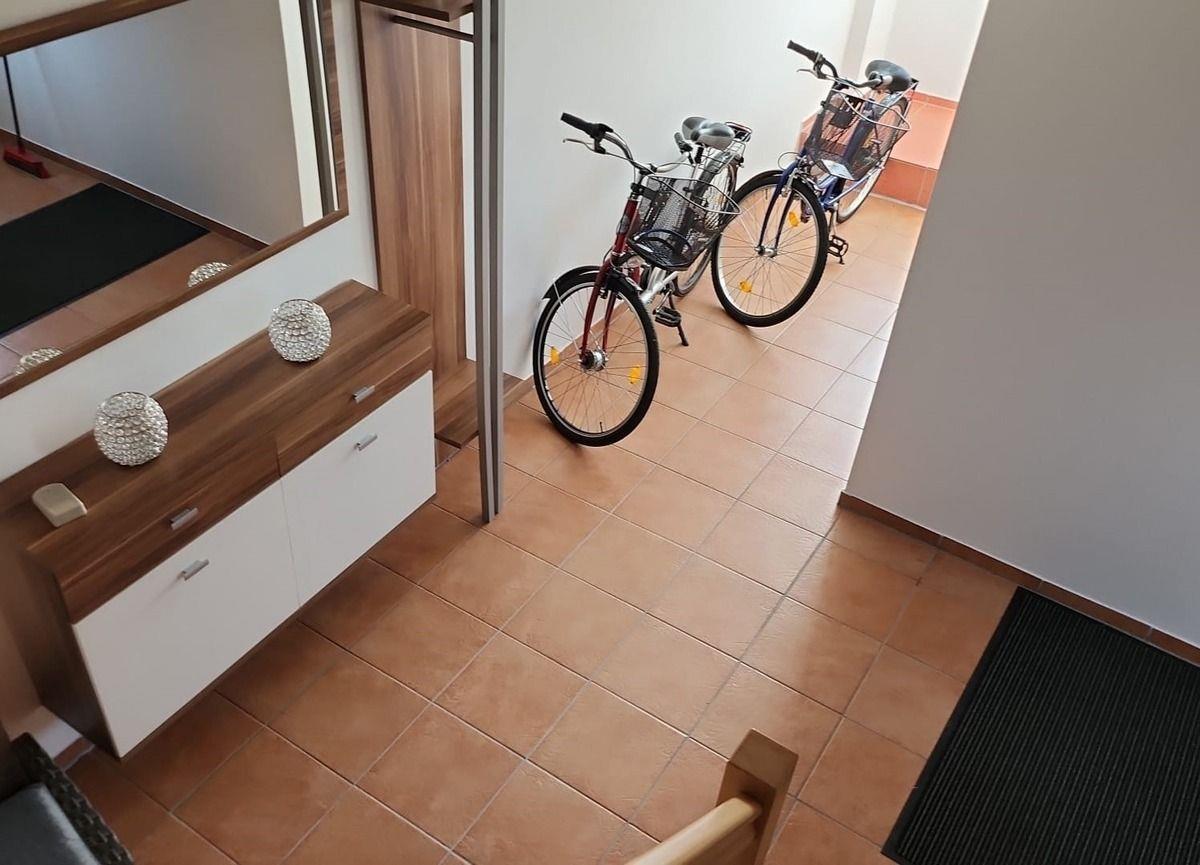 Sie betreten die Wohnung im Erdgeschoss über Ihren separaten Eingang. Sie können dort in dem großen Abstellraum Ihre mitgebrachten Fahrräder abstellen oder die Fahrräder vor Ort nutzen.