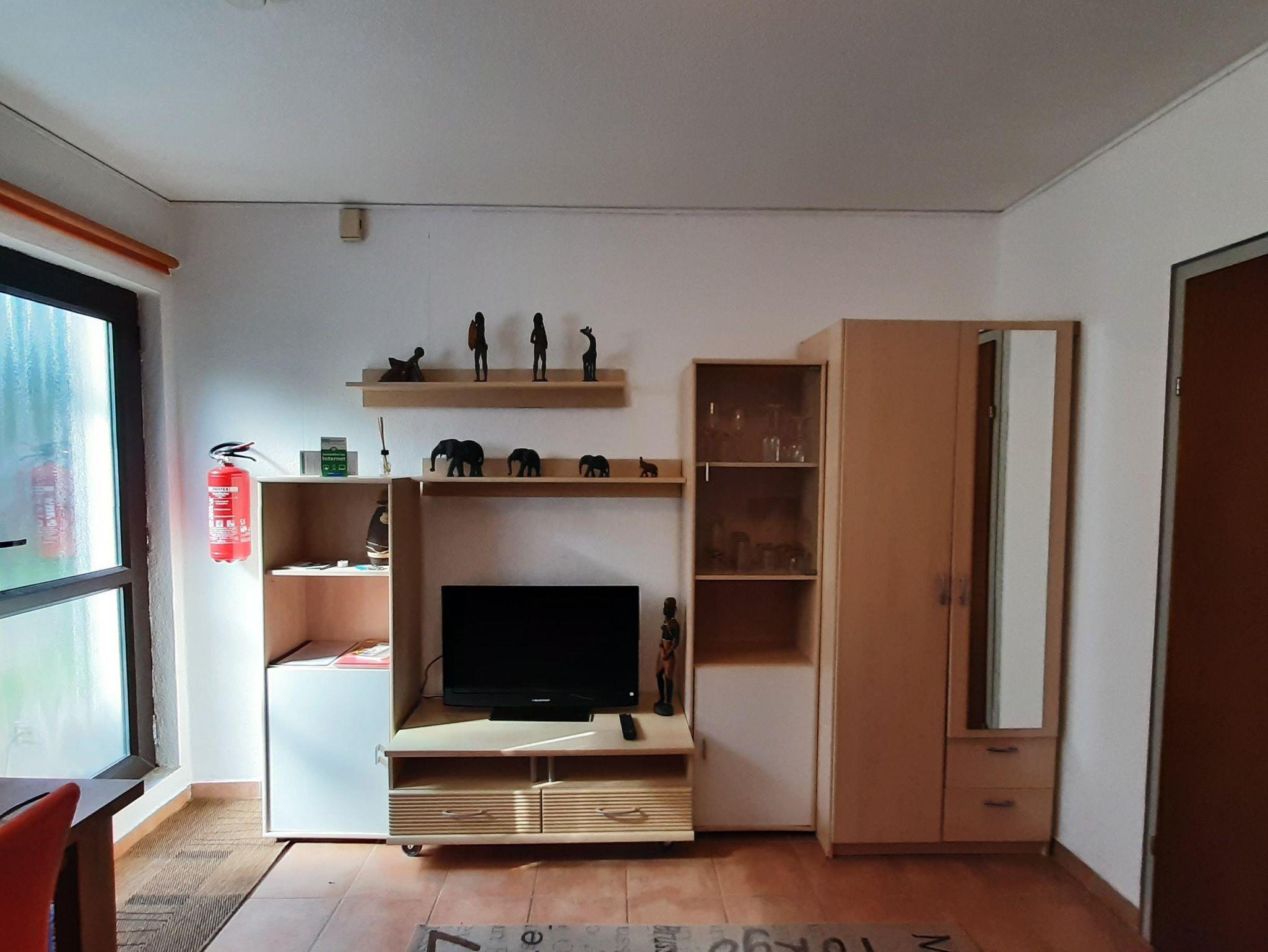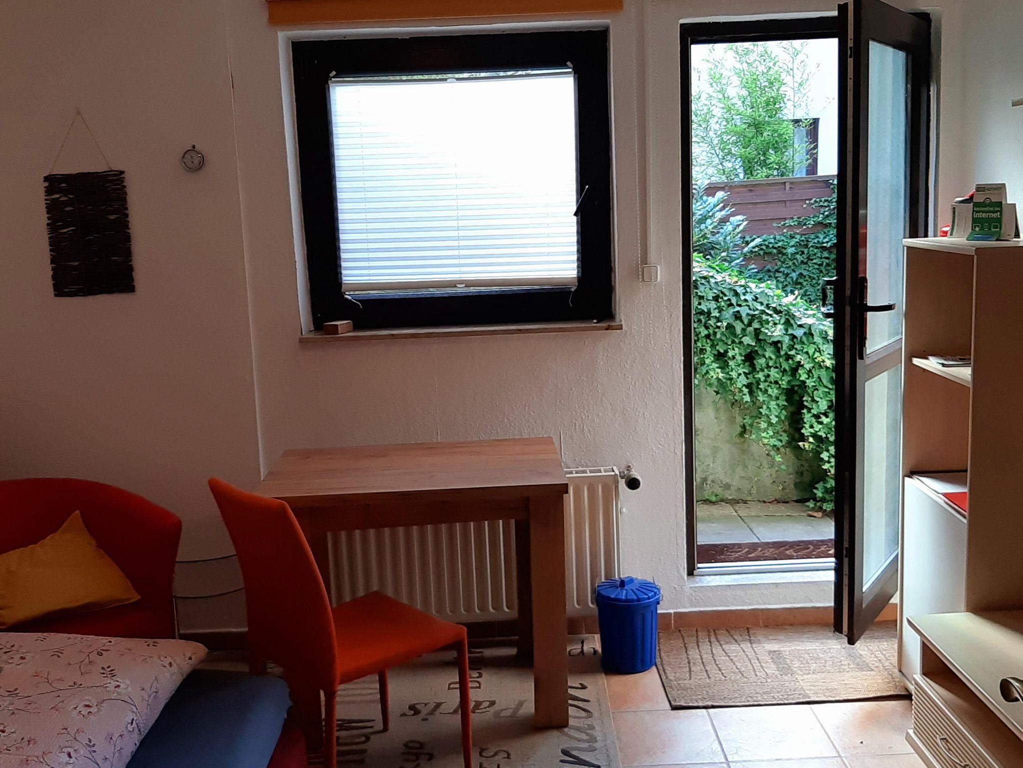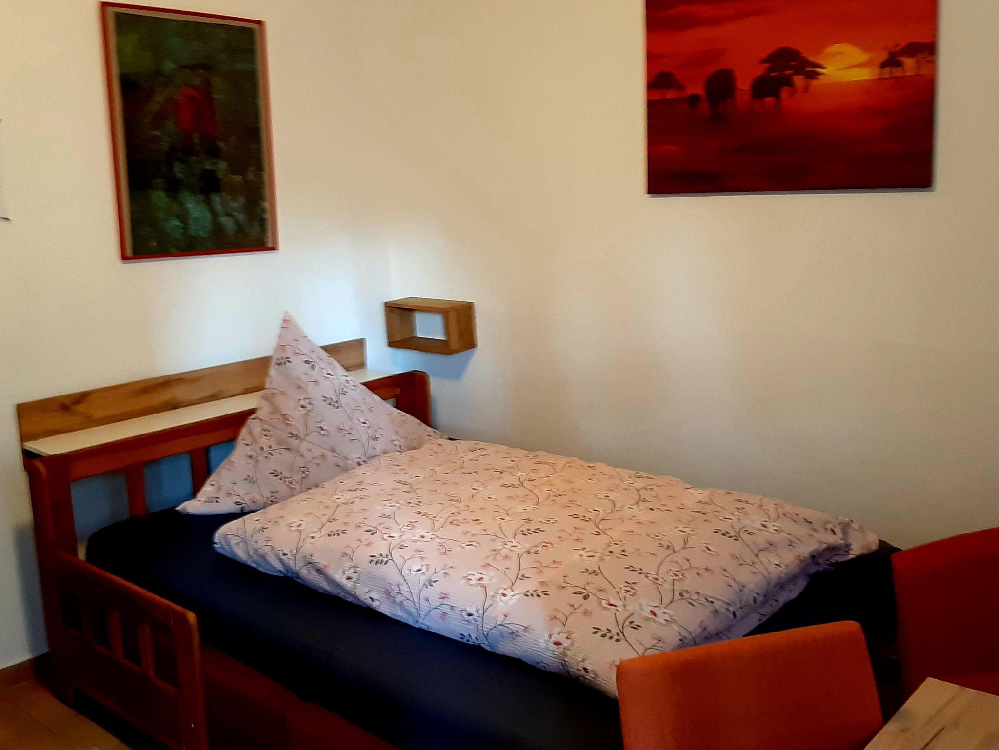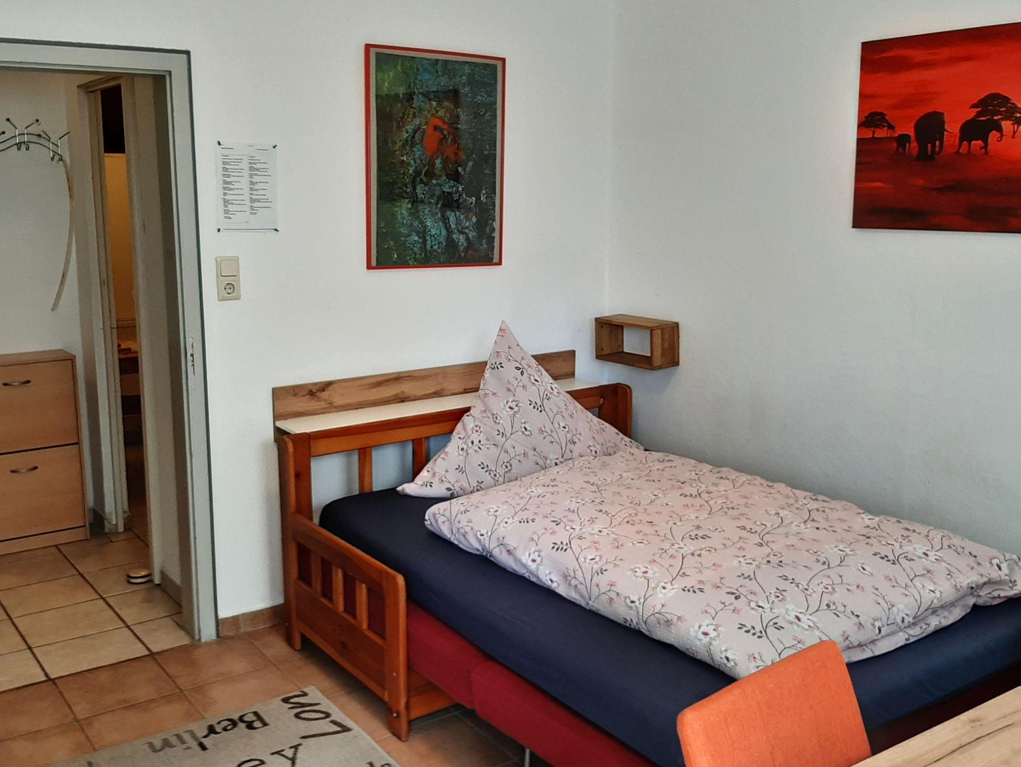 Ferienwohnung 3 (Nichtraucherwohnung) ist die kleinste Wohnung im Erdgeschoss des Hauses, Größe ca. 25 qm. Die Souterrainwohnung verfügt über einen ca. 14 qm großen Wohn/Schlafraum mit Schrankwand, zwei Kleiderschränken, französischem Bett (Liegefläche 140 x 190 cm), TV-Gerät, Computer-Tisch und Sessel.