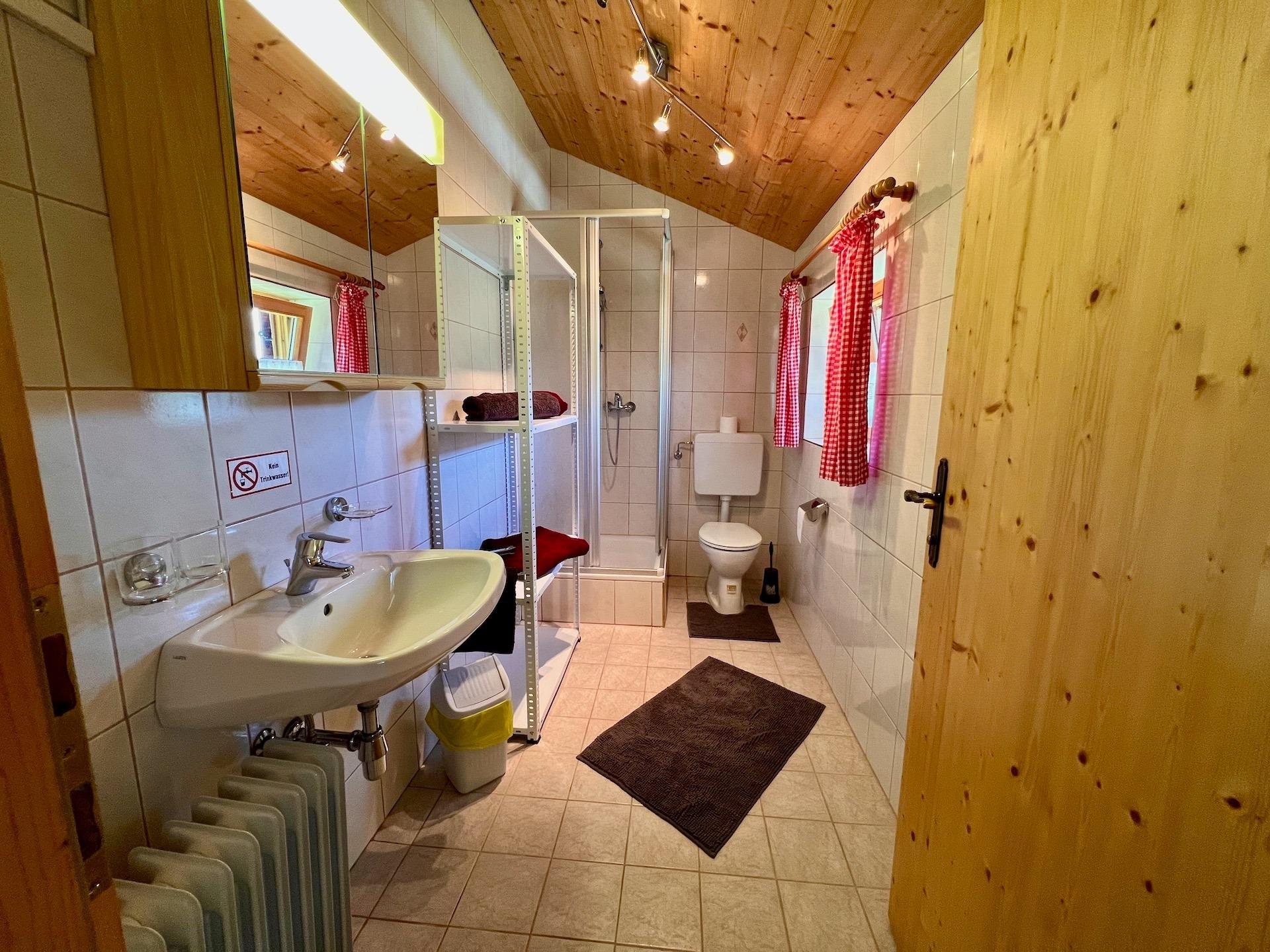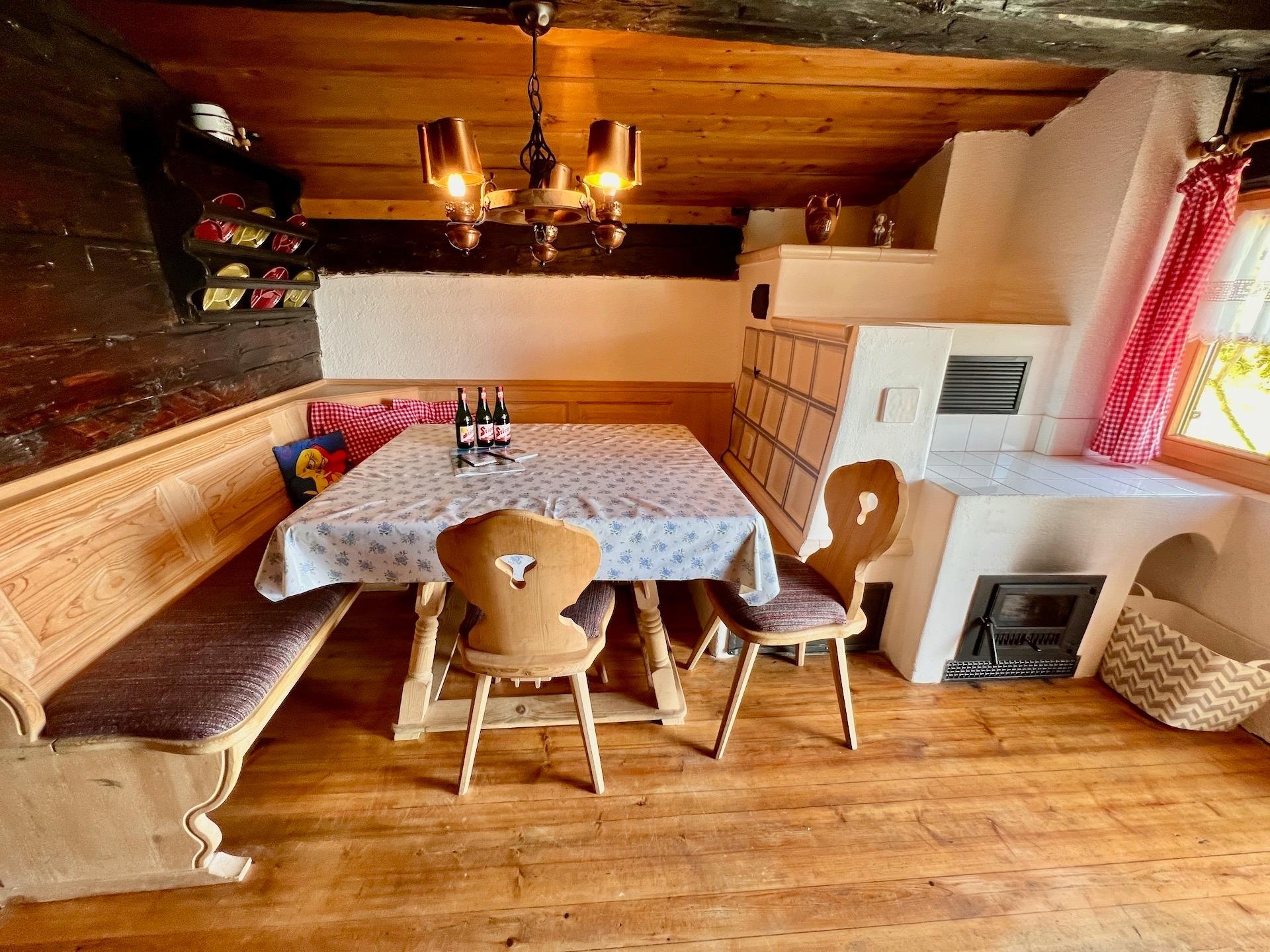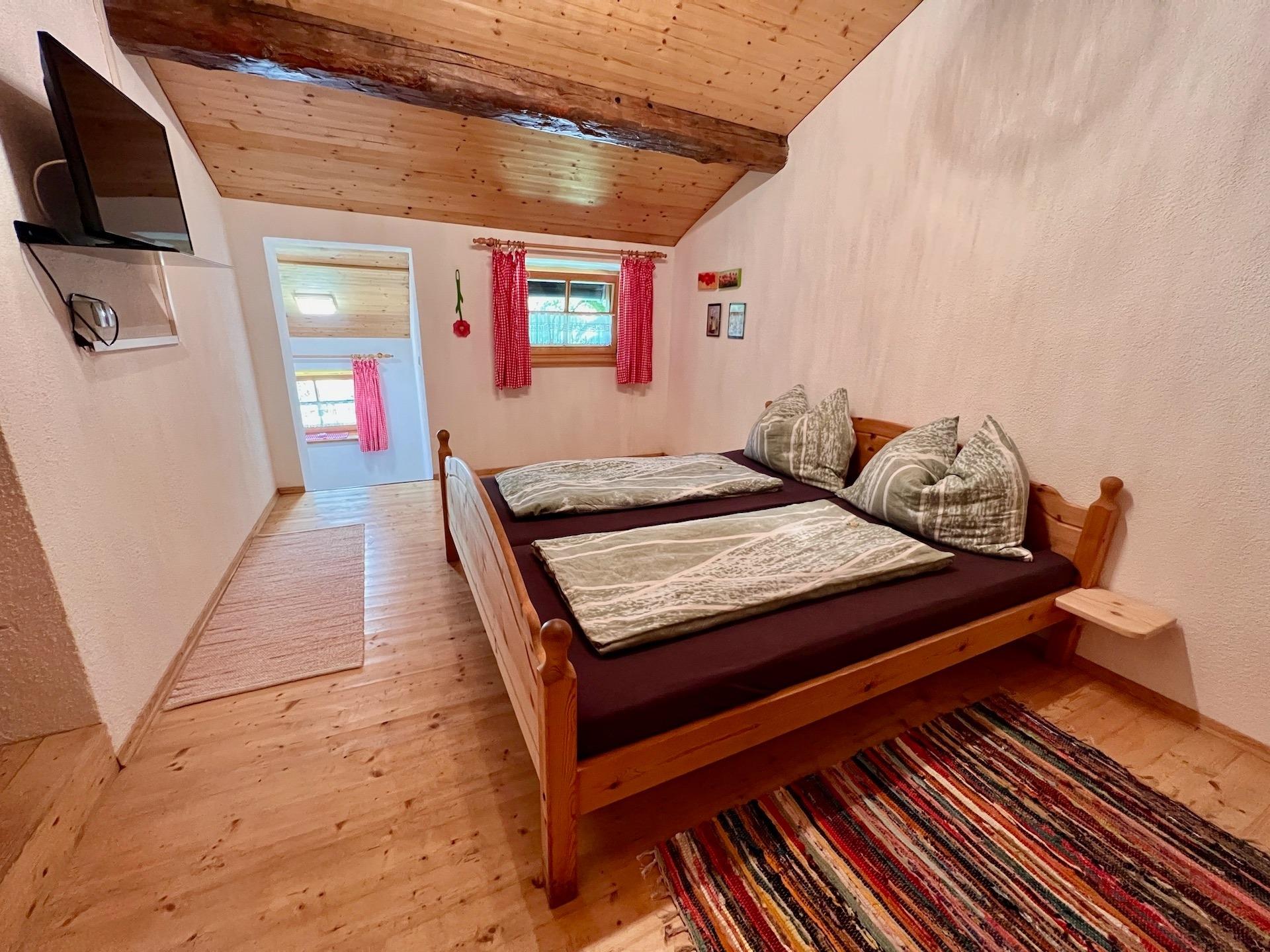 Sie werden sich auf dieser gemütlichen Alm sofort wohl fühlen. In der urigen Stube mit einladender Eckbank und wärmendem Kachelofen können Sie herrlich zusammensitzen. Die gut ausgestattete Küche direkt gegenüber ist angenehm modern und passt gut zur rustikalen Einrichtung. Im geräumigen Schlafzimmer, das mit hochwertigen Vollholzbetten ausgestattet ist, werden besonders Kinder das Stockbett neben dem großen Doppelbett sehr zu schätzen wissen. Auf Komfort muss hier nicht verzichtet werden – gleich neben dem Schlafzimmer befindet sich das Bad mit Dusche, WC und Waschbecken.