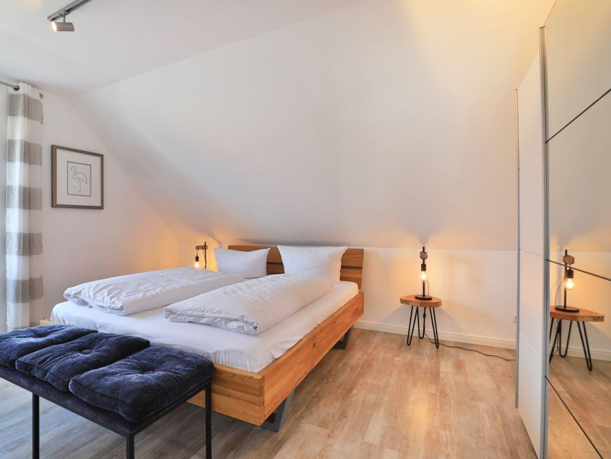 Das Domizil bietet Unterhaltungselektronik mit insgesamt vier Fernsehgeräten und einer Musikanlage. Selbstverständlich ist die Internetnutzung über WLAN gebührenfrei. Zudem befinden sich im Erdgeschoss ein separates, komfortables Schlafzimmer mit Doppelbett, Kleiderschrank, Kommode und Fernsehgerät sowie ein sehr geräumiges, ebenerdiges Tageslicht Duschbad.