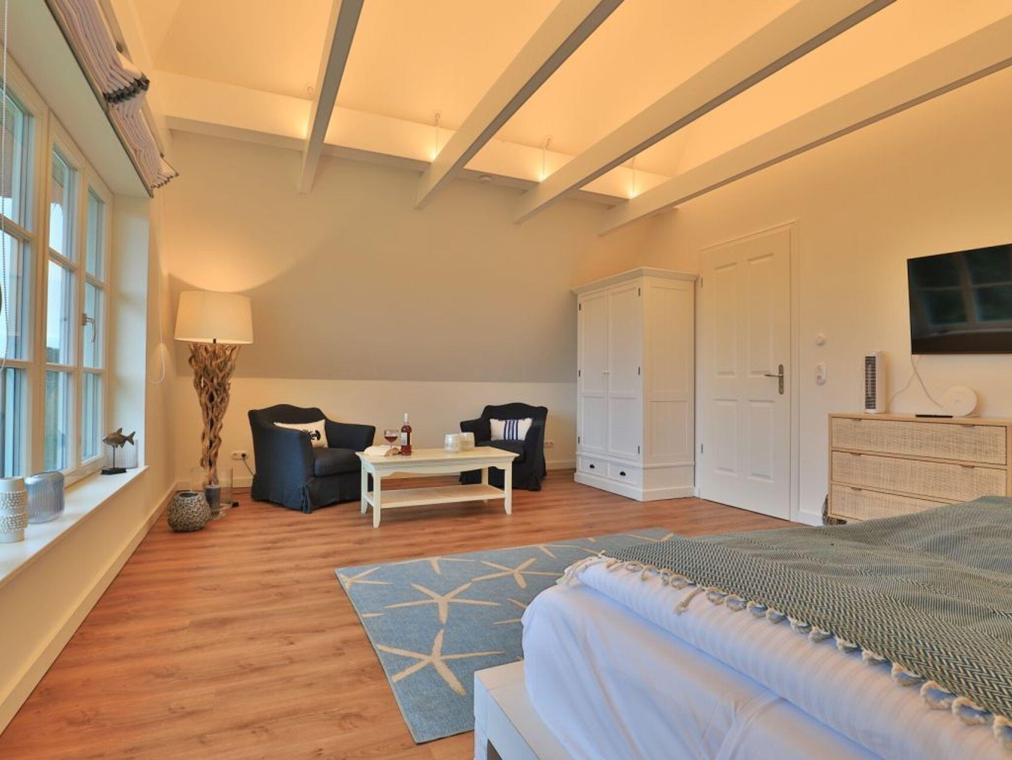 Das modern gestaltete Ferien Reetdachhaus ist mit 160qm Wohnfläche für insgesamt bis zu 8 Personen eingerichtet. Sechs Erwachsene Gäste und zwei Kinder können in diesem außergewöhnlich schicken Domizil ihre Ferien verbringen. Das Haus liegt nur 800m zum wunderschönen Strand von Groß Schwansee. Die verkehrsberuhigte Lage innerhalb eines Ferienwohngebietes und das eingezäunte Grundstück bieten beste Bedingungen für einen erholsamen Familienurlaub oder auch für den Urlaub mit Freunden. Ihr Hund ist ein sehr willkommener Gast -gegen Gebühr-. Direkt vom Grundstück des Ferienhauses gelangen Sie auf einen benachbarten Feldweg. Der Wohnbereich im Erdgeschoss, mit dem einladenden Wohn-/Essraum, ist durch eine insgesamt sehr großzügige Gestaltung auch für Rollstuhlfahrer nutzbar. Die Innentüren dieses schicken Hauses sind von der Breite her mit dem Rollstuhl durchfahrbar. Im Wohnbereich lädt sehr komfortables Mobiliar, wie auch ein wohliger Holzkaminofen zum gemütlichen Beisammensein ein. Fernseher und kostenfreies WLAN sind vorhanden. Die technisch hervorragend ausgestattete Wohnküchenzeile überzeugt mit Induktionsherd, Geschirrspüler u.v.m. Sowohl am großen Esstisch, oder im Sommer auch auf der ebenerdigen Terrasse, können Sie bequem Ihre Mahlzeiten einnehmen. Zudem ist hervorzuheben, dass Haus Barkley über vier separate Schlafzimmer verfügt. Zwei der Schlafzimmer bieten jeweils ein Doppelbett und TV. Ein drittes Schlafzimmer ist mit einem Etagenbett ausgestattet und das vierte der Zimmer mit einem ausziehbaren Einzelbett, so dass auch in diesem Schlafbereich bei Bedarf zwei Personen nächtigen können. Im Obergeschoss des Hauses ist ein weiteres Tageslicht Badezimmer vorhanden, welches Sie mit einer Badewanne und einer ebenerdigen Dusche verwöhnt. Für besondere Wohlfühlmomente empfiehlt sich die Nutzung der hauseigenen Sauna -gegen Gebühr. Die exklusive Gesamtausstattung dieses Reetdachhauses verspricht allen Mitreisenden einen sehr erholsamen Aufenthalt. Bei Anreise sind die Betten als inklusive Leistung bereits für Sie bezogen. Für Kinder steht ein Bollerwagen bereit. Waschmaschine sowie Wäschetrockner können gerne genutzt werden. Das Erdgeschoss dieses Feriendomizils ist mit dem Rollstuhl nutzbar. Es handelt sich um ein Nichtraucherhaus. Haustiere sind willkommen. Das Grundstück bietet drei PKW-Stellplätze und eine PKW E-Ladesäule. Bei Anreise ist eine Kaution in Höhe von 500 Euro in bar zu hinterlegen.