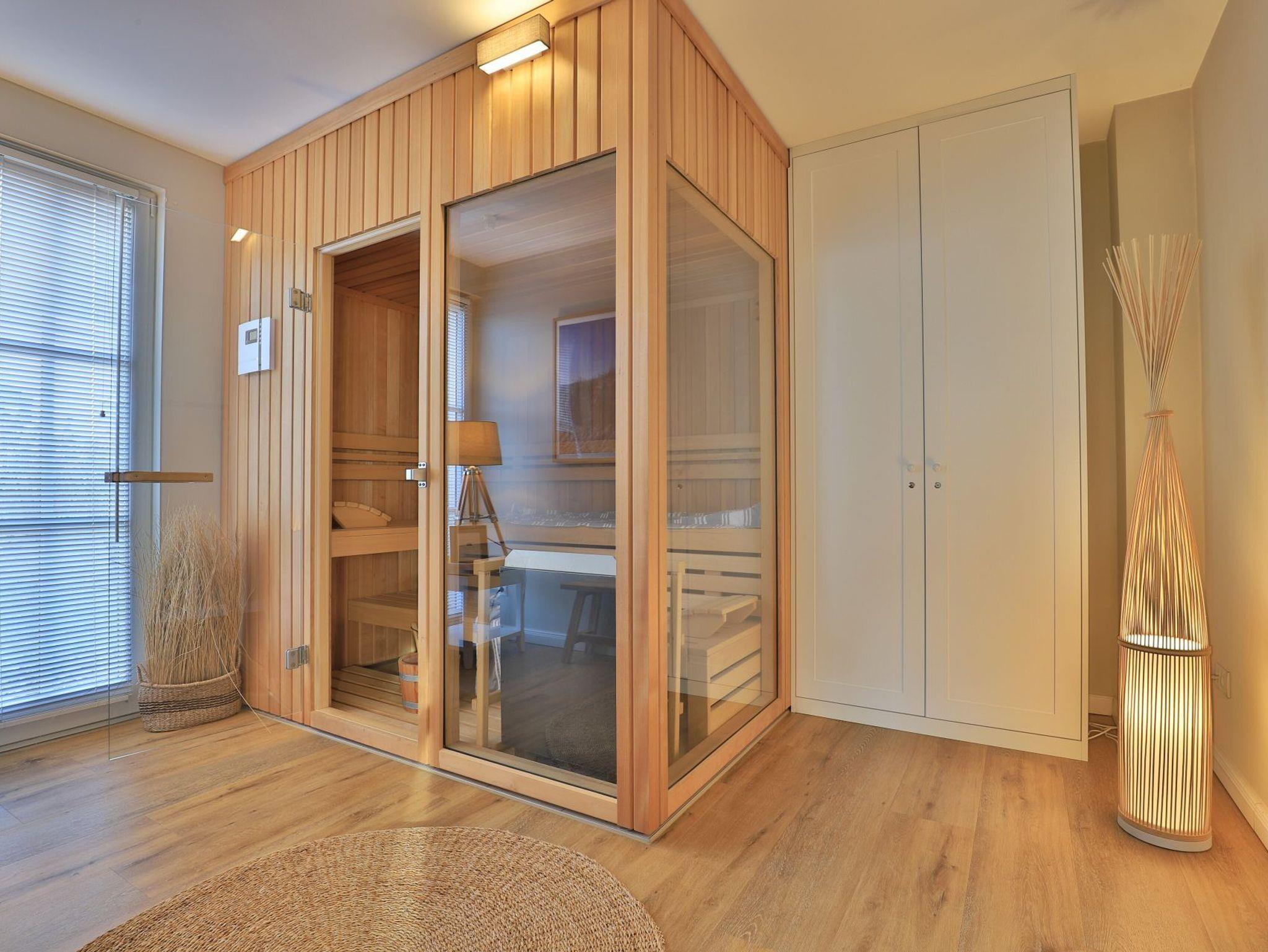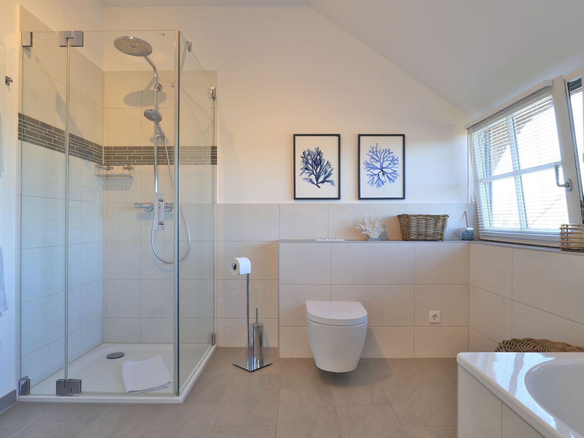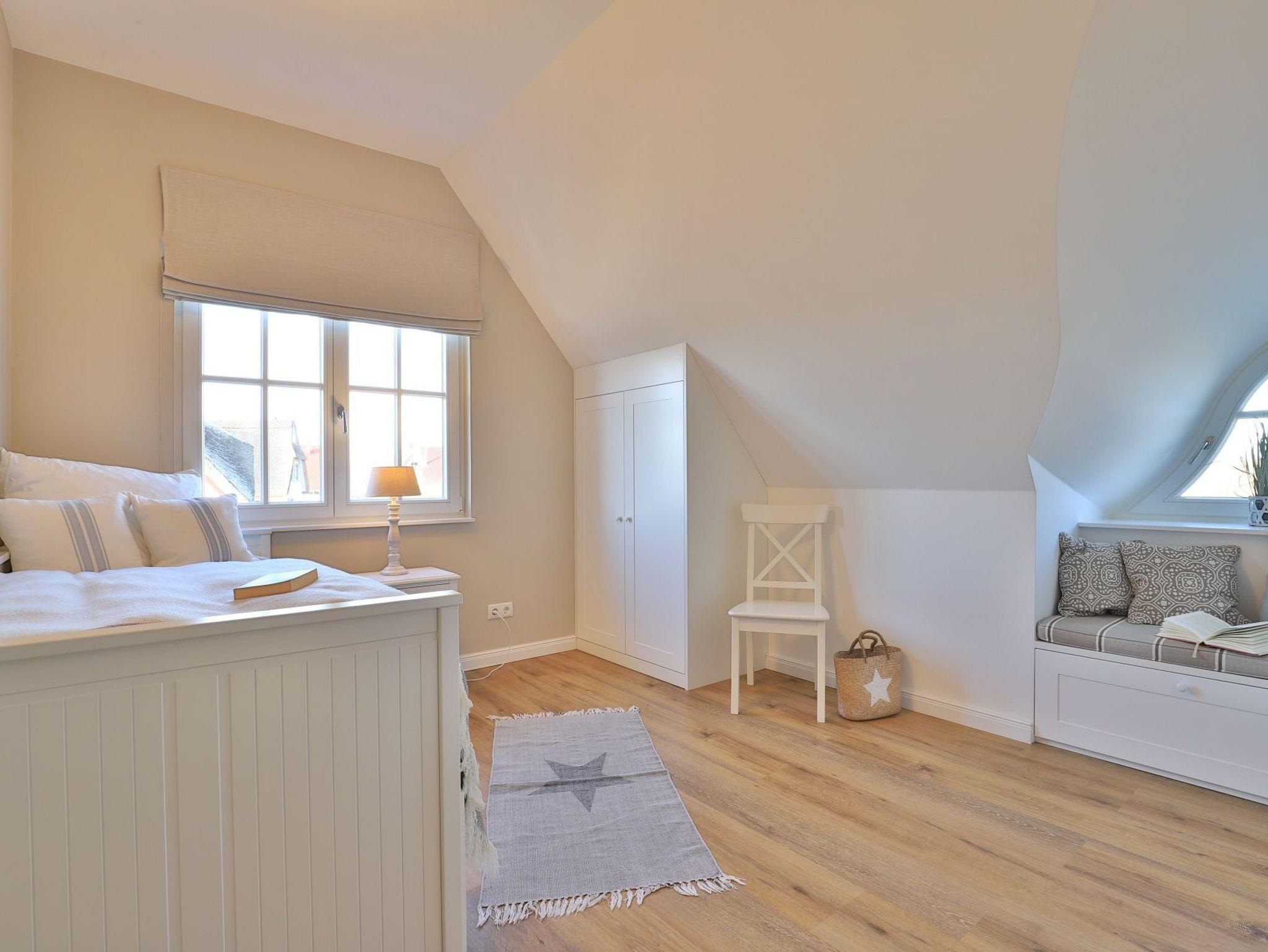 Hier befinden sich drei separate Schlafzimmer 2x mit ausziehbarem Einzelbett und Kleiderschrank, 1x mit Doppel Boxspringbett sowie SMART-TV, Kleiderschrank und Sitzecke. Ein zweites Badezimmer mit Dusche und Badewanne befindet sich ebenso im Obergeschoss des Hauses. Das gesamte Haus ist mit einer Fußbodenheizung ausgestattet.