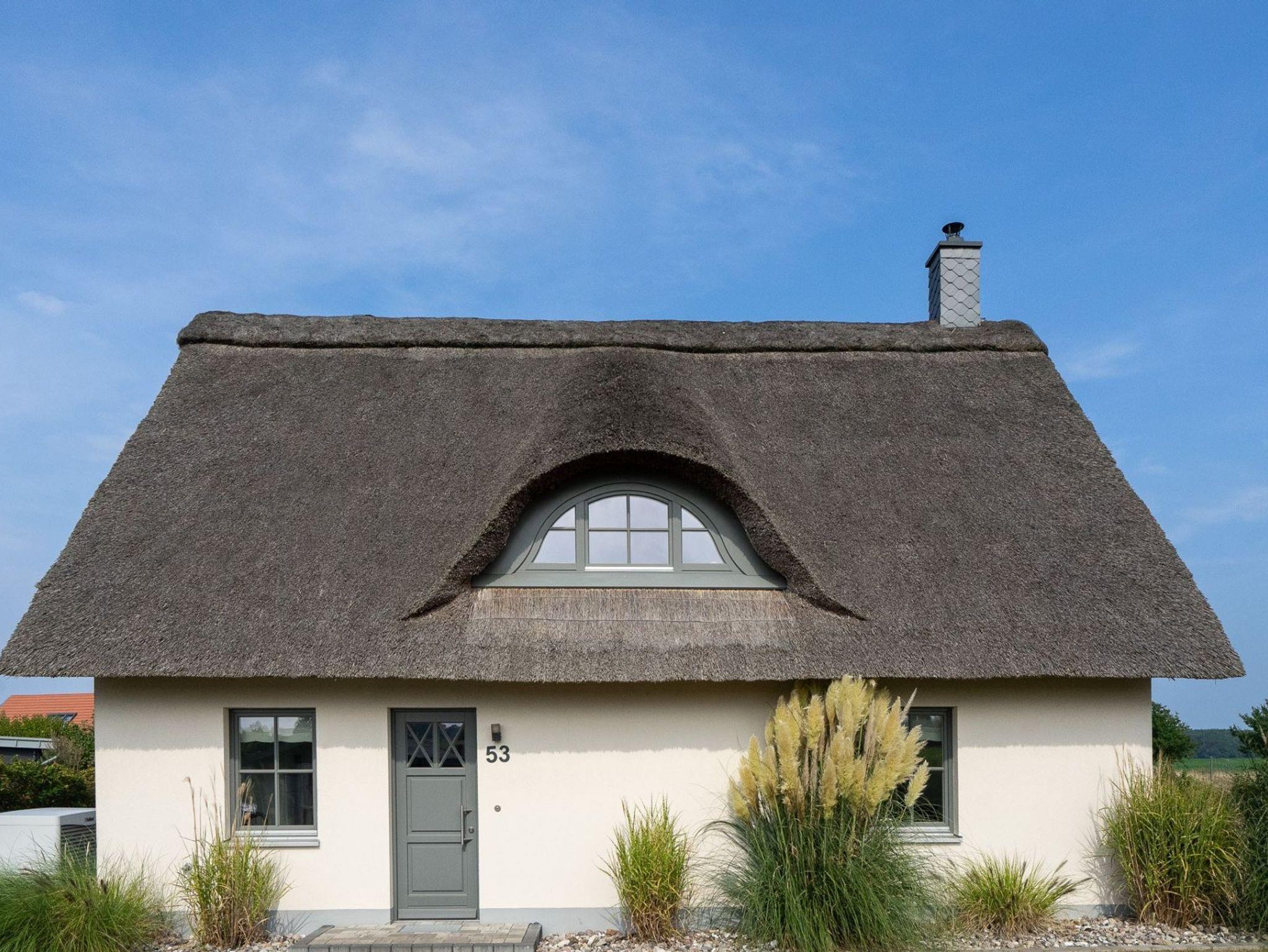 Das sehr komfortable Reetdachhaus Groß Schwansee ist ein ideales Ferienhaus für Gäste, die mit ihrem Hund Urlaub in naturnaher Umgebung verbringen möchten. Nach einem gemütlichen Spaziergang erreichen Sie in 1100 Meter den Natur Badestrand. Einige Strandzugänge in der Umgebung sind saisonabhängig auch für Hundes ausgewiesen. Auf einer Wohnfläche von 133qm bietet das exklusive 4-Zimmer-Feriendomizil für bis zu 6 Personen einen einladenden Wohn-Essbereich mit Kamin, Sofalandschaft, Smart-TV, Musikanlage sowie einen großzügigen Esstisch mit Blick auf die saisonal möblierte Terrasse. WLAN nutzen Sie kostenfrei. Die hochwertige Küchenzeile ist offen in den Wohnbereich integriert und voll ausgestattet mit Ceranfeldherd, Backofen, Kühlschrank mir Gefrierfach sowie Mikrowelle, Geschirrspüler und Kaffeemaschine, Toaster uvm. Zudem befinden sich im Erdgeschoss ein modernes Tageslichtbad und eine Sauna. Das Obergeschoss ist über eine Holztreppe erreichbar.