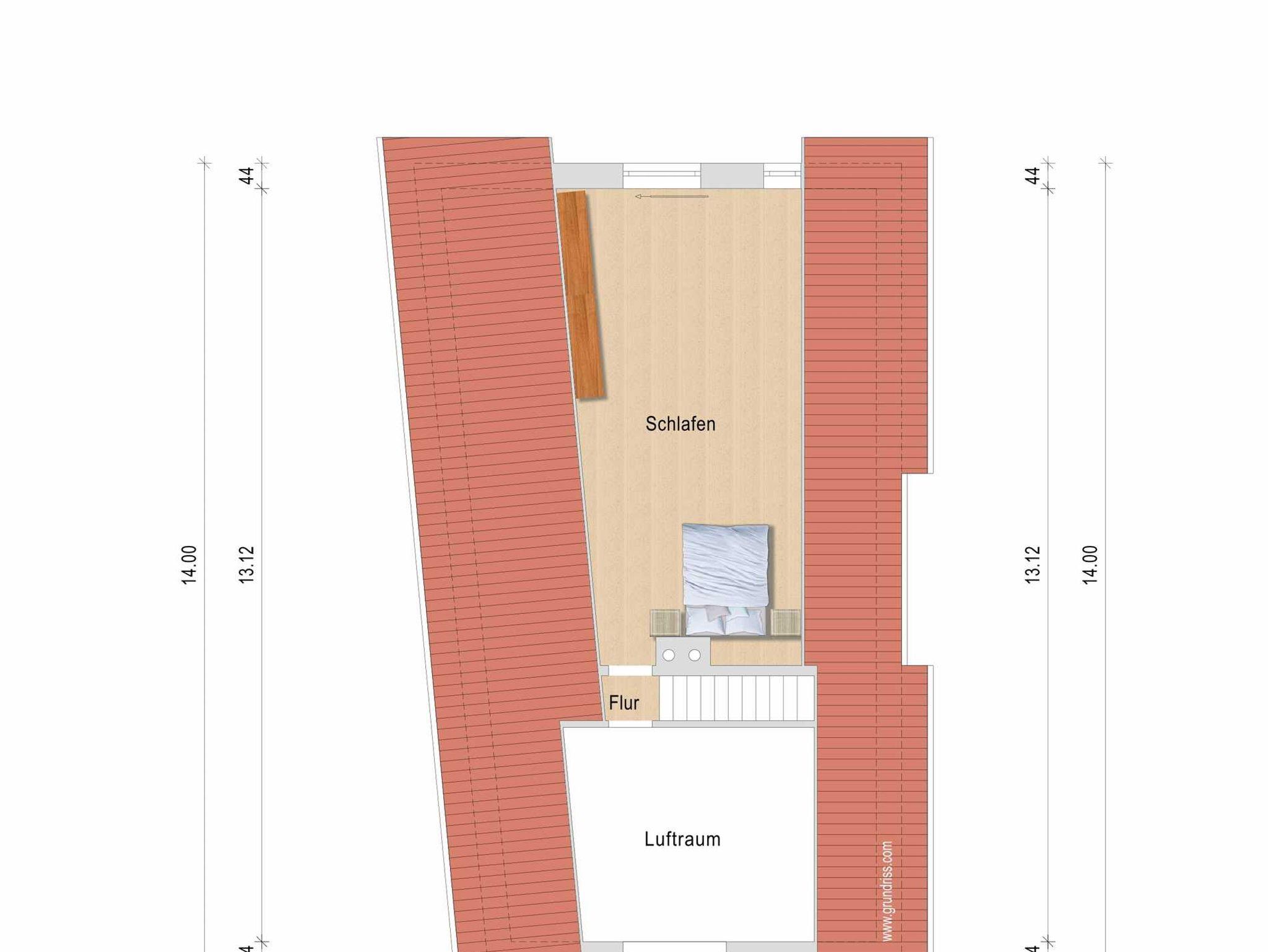 ab. Vom Wohnzimmer aus gelangen Sie in den offenen Spitzboden, auf welchem sich