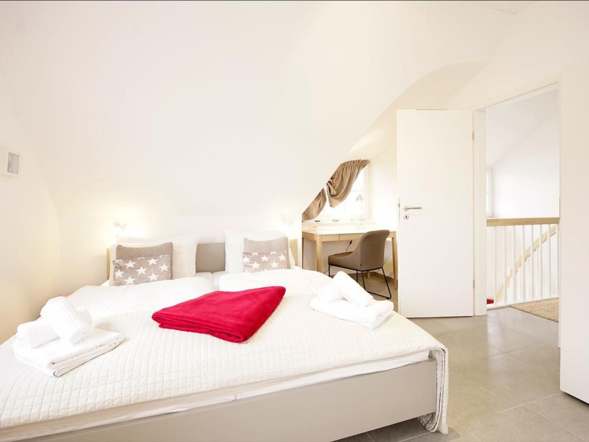 Modern und komfortabel verbringen Sie einen traumhaften Urlaub in diesem besonders hochwertig ausgestatteten Reetdach-Ferienhaus mit Kaminofen und hauseigener Sauna. Das schicke Domizil bietet für bis zu 4 Personen geräumigen Wohnraum von 106qm und ist unterteilt in einen hellen Wohn-/Essbereich mit voll ausgestatteter Küchenzeile sowie einem großen Esstisch mit 4 Sitzplätzen und Blick auf die Terrasse mit Strandkorb. Selbstverständlich sind Flachbild- TV, Musikanlage vorhanden und WLAN können Sie kostenfrei nutzen. Machen Sie es sich so richtig gemütlich auf der bequemen Couch oder im Lesesessel. Die Küchenzeile verwöhnt mit allem, was zur Zubereitung der Urlaubsmahlzeiten benötigt wird ? Geschirrspüler, Ceranfeld-Herd mit Backofen, Dunstabzugshaube, Mikrowelle, Kaffeemaschine, Wasserkocher, Toaster u.s.w. Ein helles Duschbad mit Sauna ist ebenso im Erdgeschoß des Hauses vorhanden. Drei separate Schlafzimmer befinden sich im Obergeschoss, das Sie über eine Holztreppe erreichen. 1x mit einem Doppelbett, Kleiderschrank, Schreibtisch und 2x mit jeweils einem Einzelbett. Sehr großzügig ist auch das schicke Vollbad im Obergeschoss mit Badewanne, Dusche, WC und Tagesfenster. Gäste mit Hund (5?/Tag) sind im Haus ?Roter Milan? herzlich willkommen. Brötchenlieferservice möglich. Ihren PKW parken Sie kostenfrei auf dem Außenstellplatz. Kaution in Höhe von 200? ist zu zahlen.