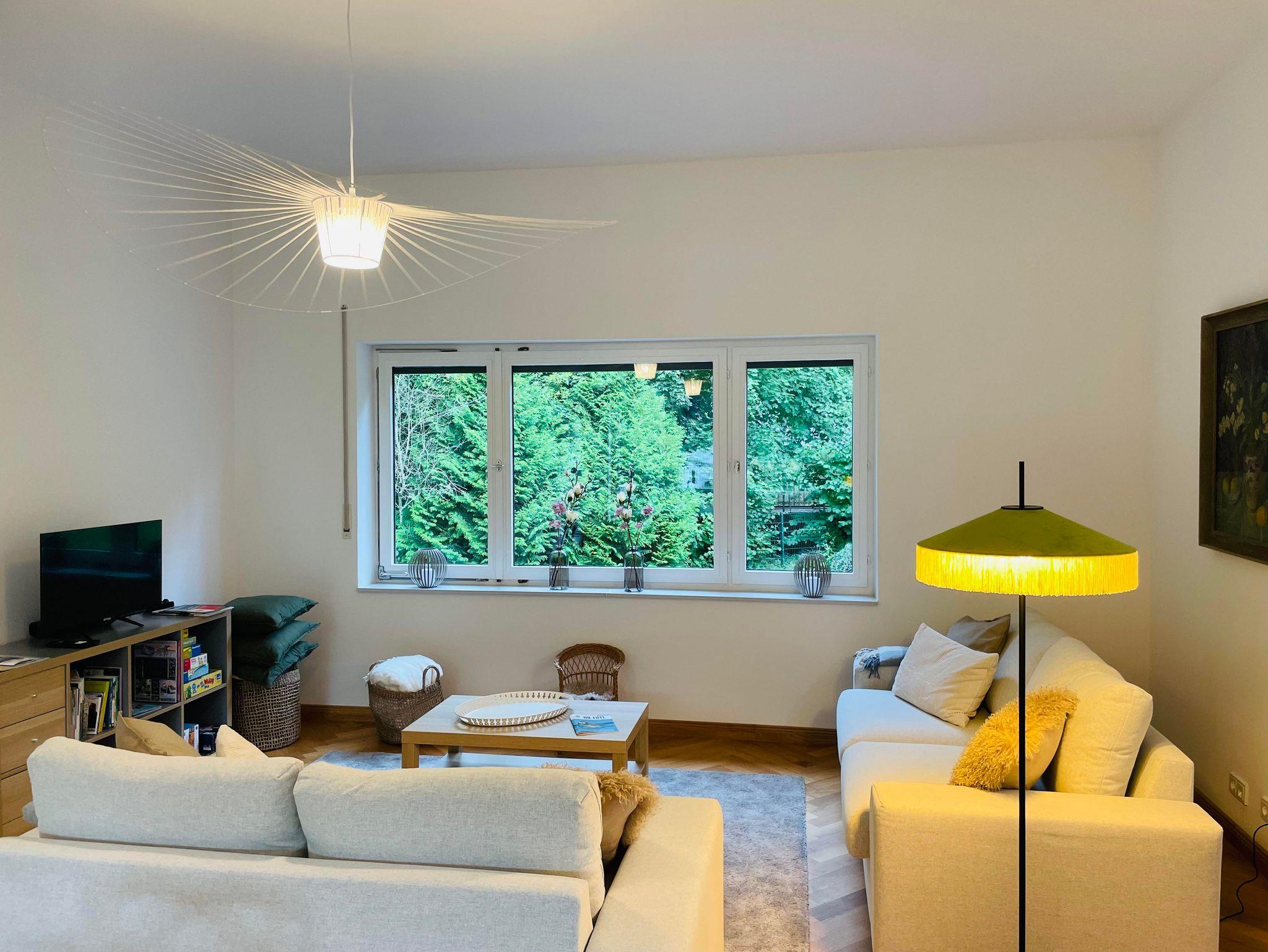 Im Jahr 2021 wurde das denkmalgeschützte Anwesen in der Eifel durch die Flutkatastrophe stark beschädigt. Nach intensiven und langen Bauarbeiten erstrahlt die Wohnung seit 2025 in neuem Glanz.