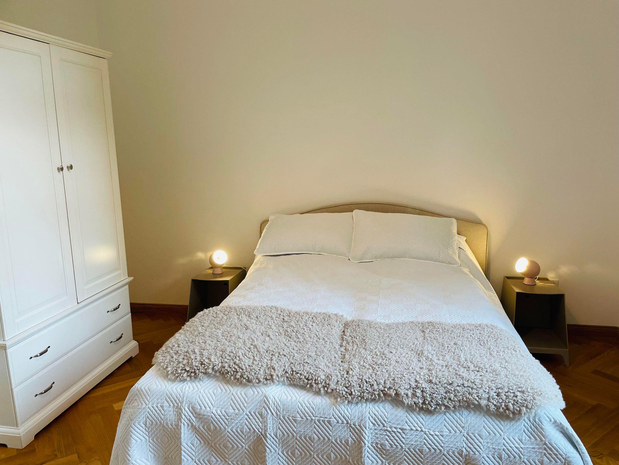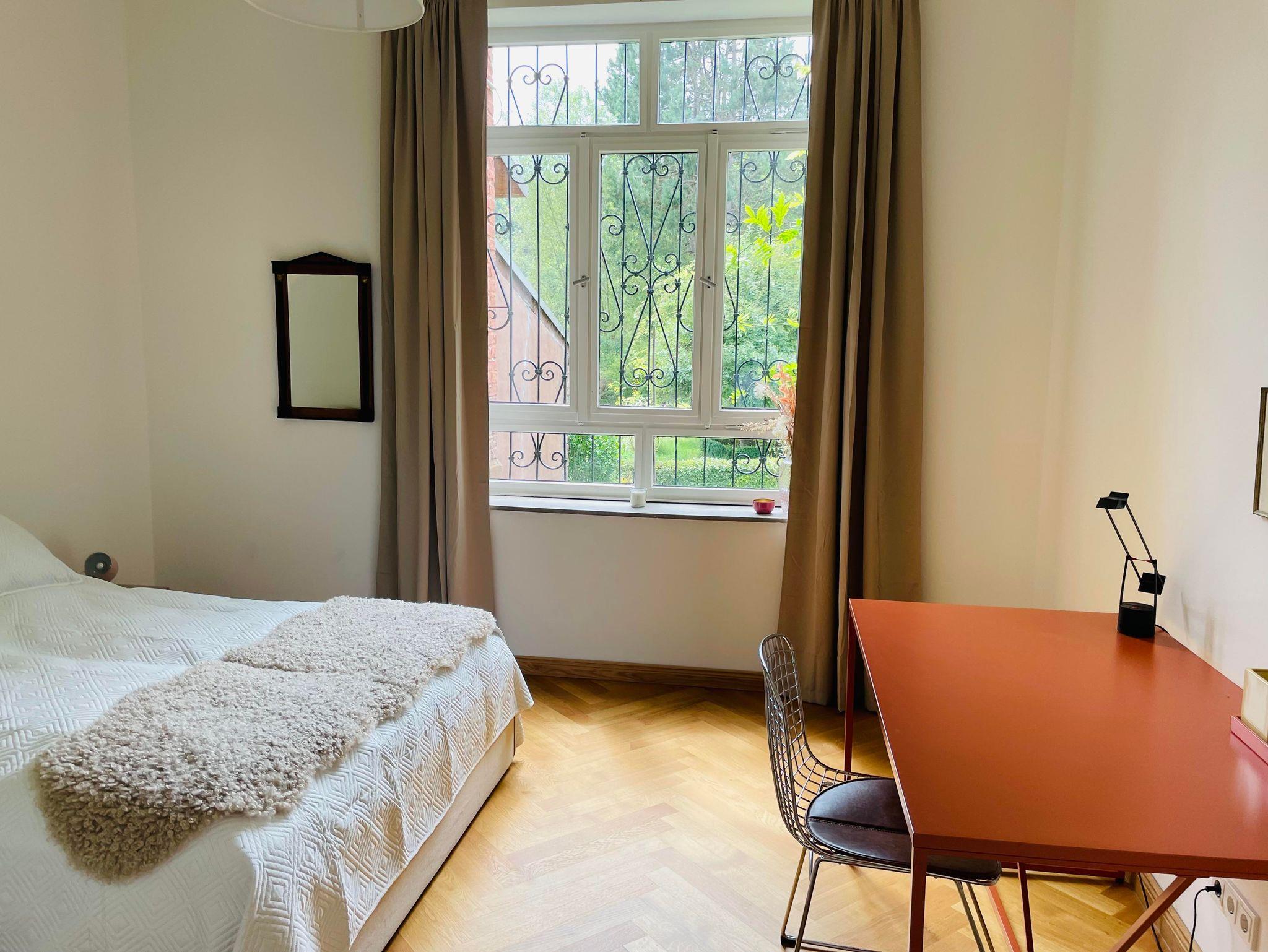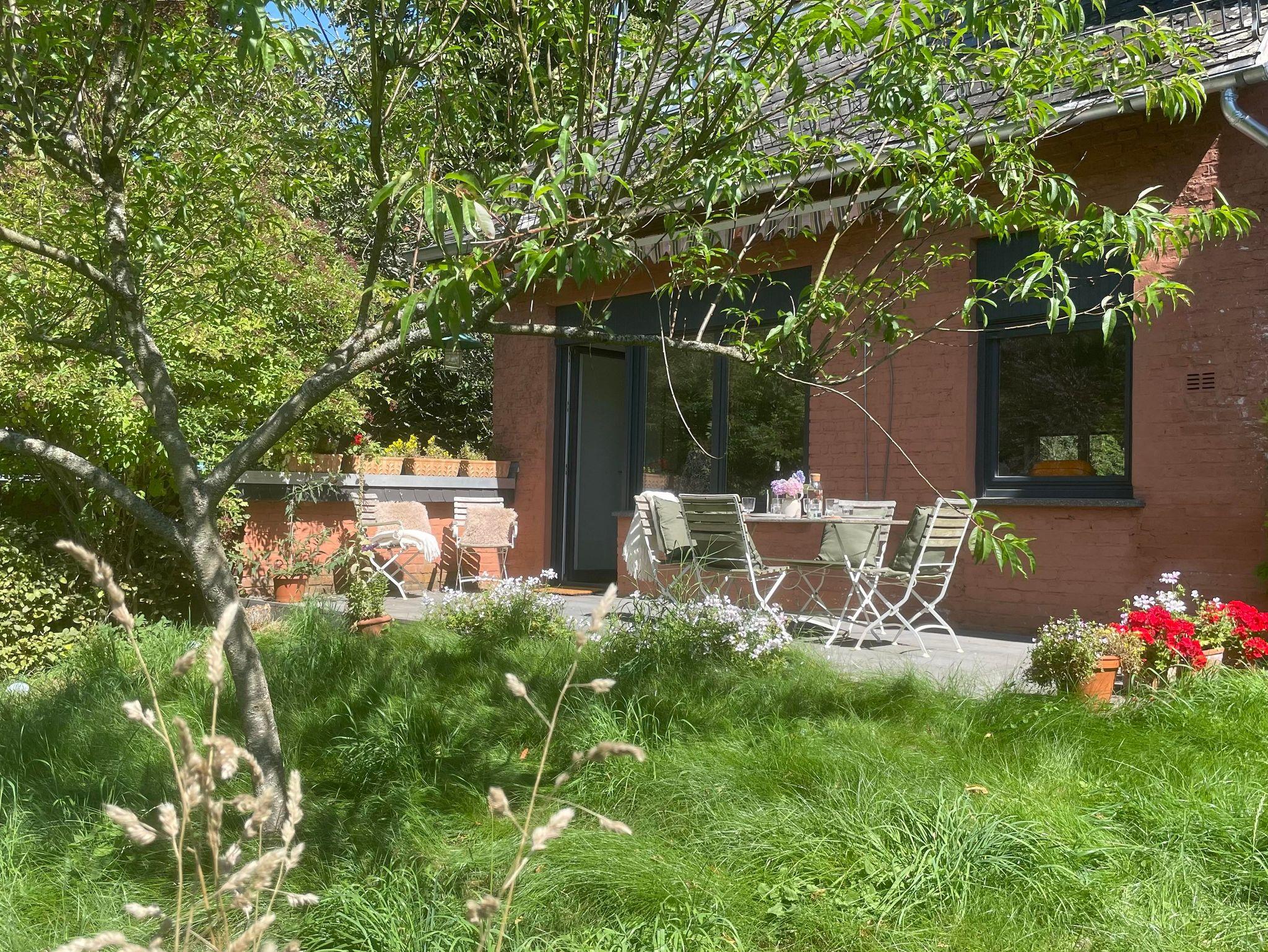 Eingebettet in die historische Atmosphäre des Hauses ist ein modernes Feriendomizil mit hochwertigem Parkettboden, Fußbodenheizung, zwei Schlafzimmern, einem lichtdurchfluteten Wohn- und Esszimmer, sowie zeitgemäßen Sanitäreinrichtungen und einer wunderschönen Terrasse mit Blick in den wilden Garten entstanden.