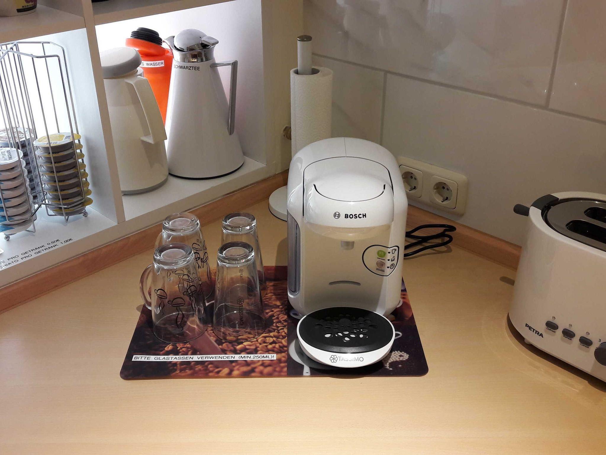 Unsere Küche ist voll ausgestattet mit Kaffeemaschine, Toaster, Tassimo Kaffeeautomat inkl. Pads (begrenzte Anzahl), Wasserkocher, Kühlschrank, Mikrowelle, Backofen, Herd, Gewürzen, 1.Hilfe Set,
