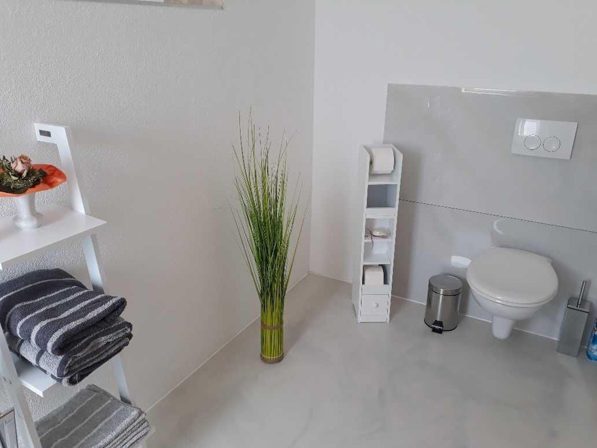 Handtüchern, begehbarer Dusche, Föhn, Seife, Dusch-Shampoo, Wandheizung und