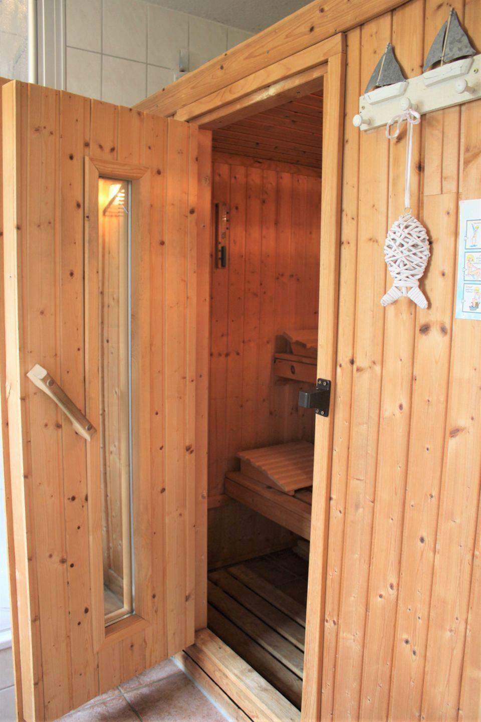 Das Badezimmer, ebenfalls in der oberen Etage des Hauses, ist mit einer Badewanne, WC und Waschtisch ausgestattet. Im zweiten Badezimmer, welches sich im Erdgeschoss des Hauses befindet, stehen Ihnen eine Dusche, ein Waschtisch, WC und eine Sauna zur Verfügung.